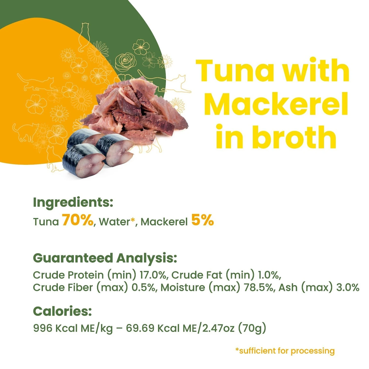 - 100% natural pet food made without additives, flavor enhancers, coloring agents or preservatives. High-quality tuna and salmon provide nutrients and the flavors your furry friend loves.