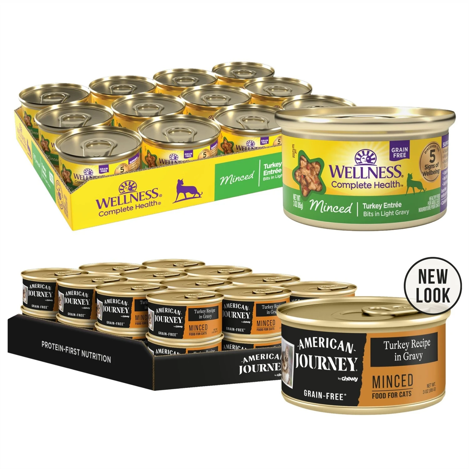 American Journey Minced Turkey Recipe In Gravy Grain-Free Canned Cat Food & Wellness Minced Turkey Entree Grain-Free Canned Cat Food