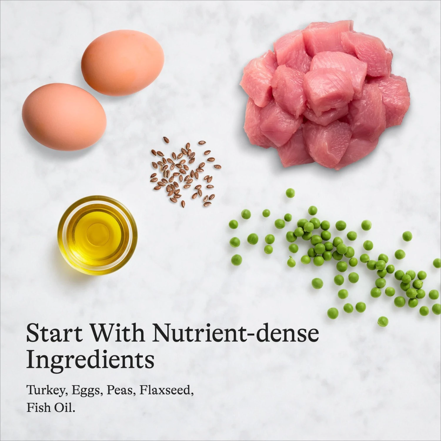 - Well-rounded, balanced recipes provide 9% crude protein from real turkey as the first ingredient.