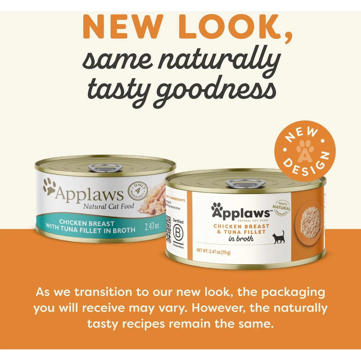 Applaws Limited Ingredient Chicken & Tuna In Broth Canned Wet Cat Food, 2.47-oz Can, Case Of 24