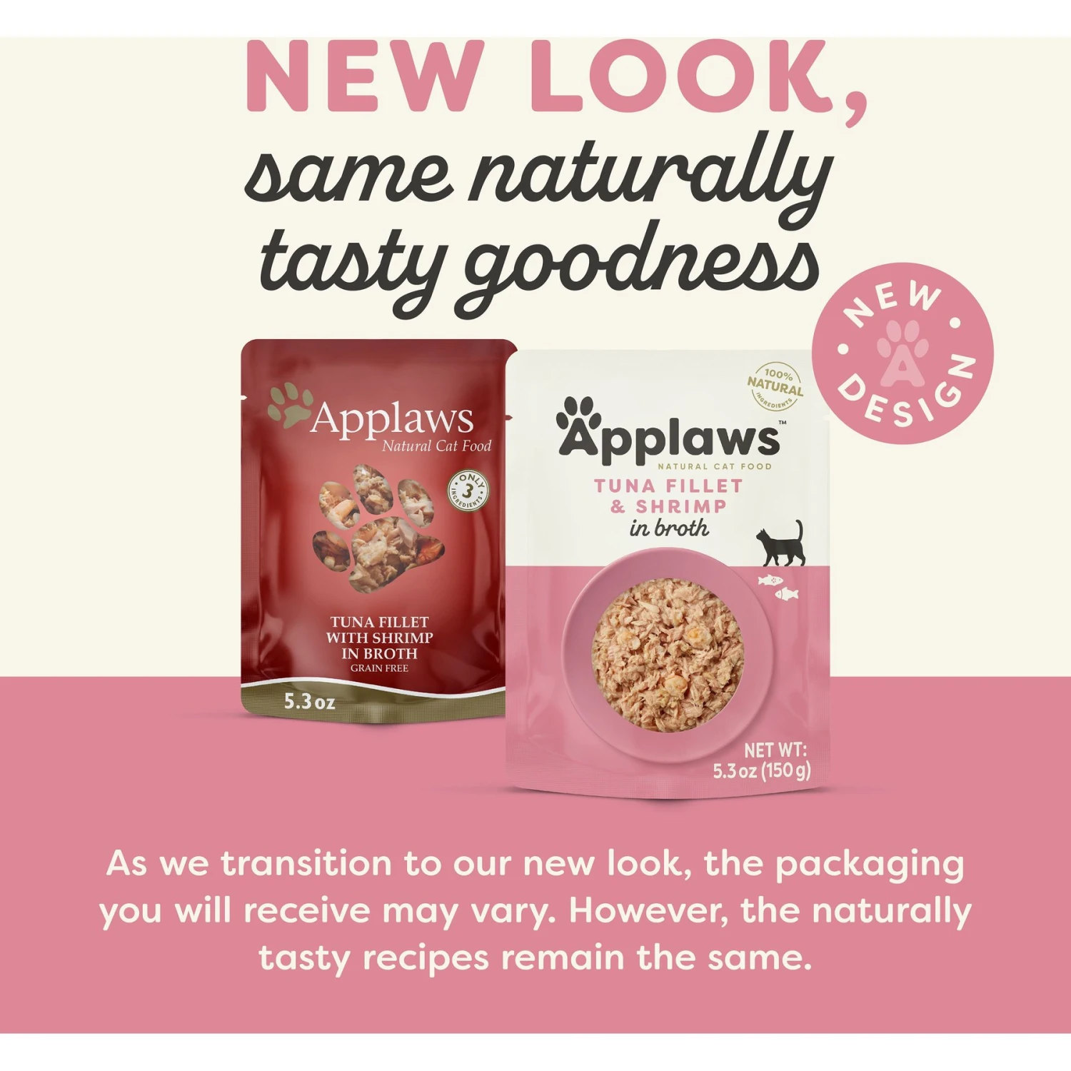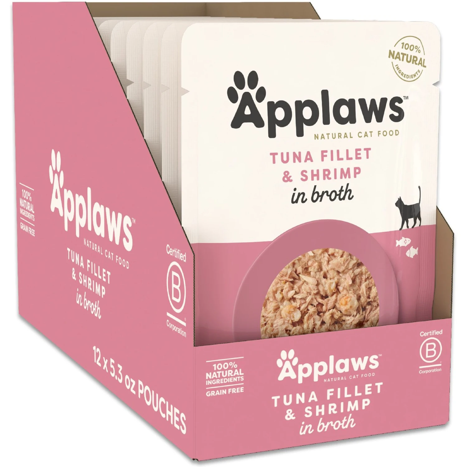 Applaws Tuna With Shrimp In Broth Limited Ingredient Wet Cat Food, 5.3-oz Pouch, Case Of 12