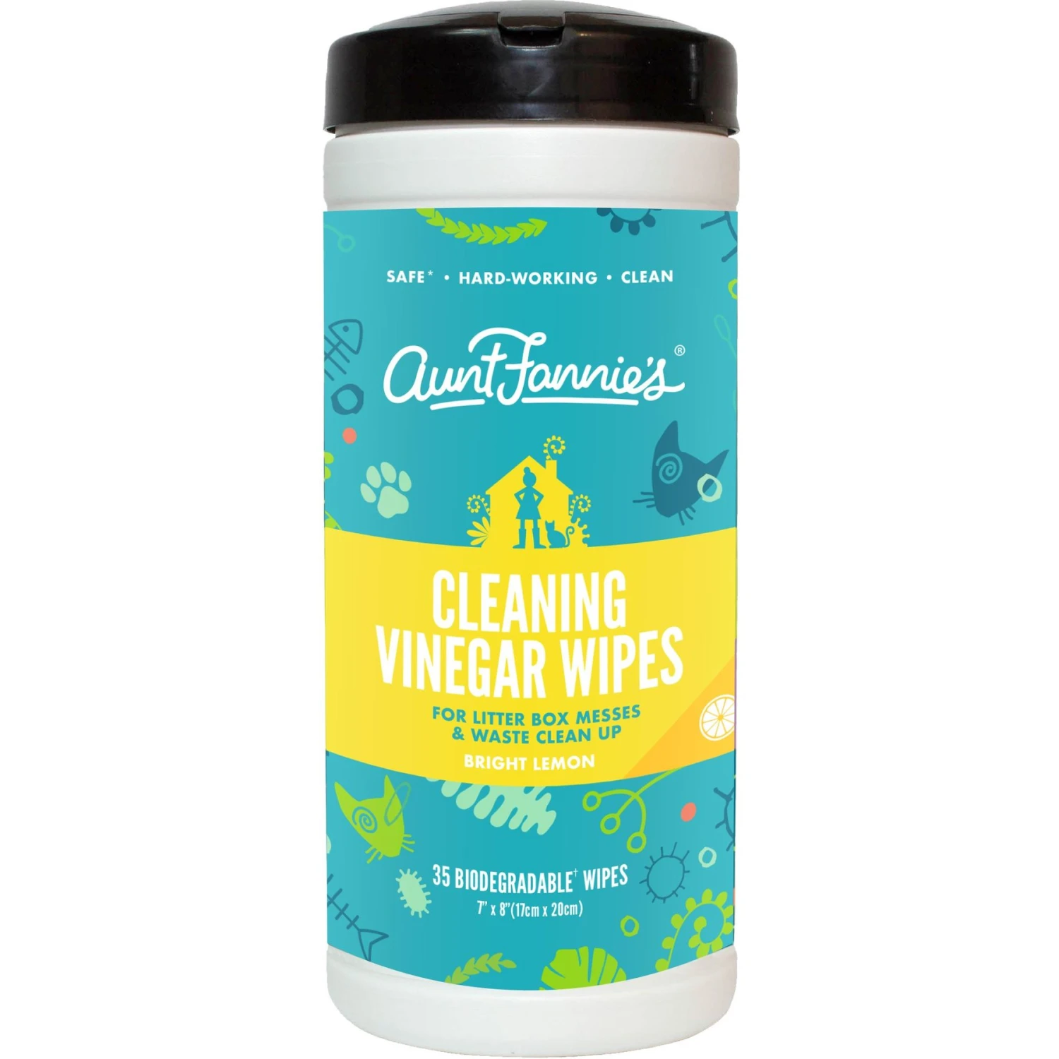 Aunt Fannie’s Cleaning Vinegar Bright Lemon Scented Cat Wipes, 35 Count
