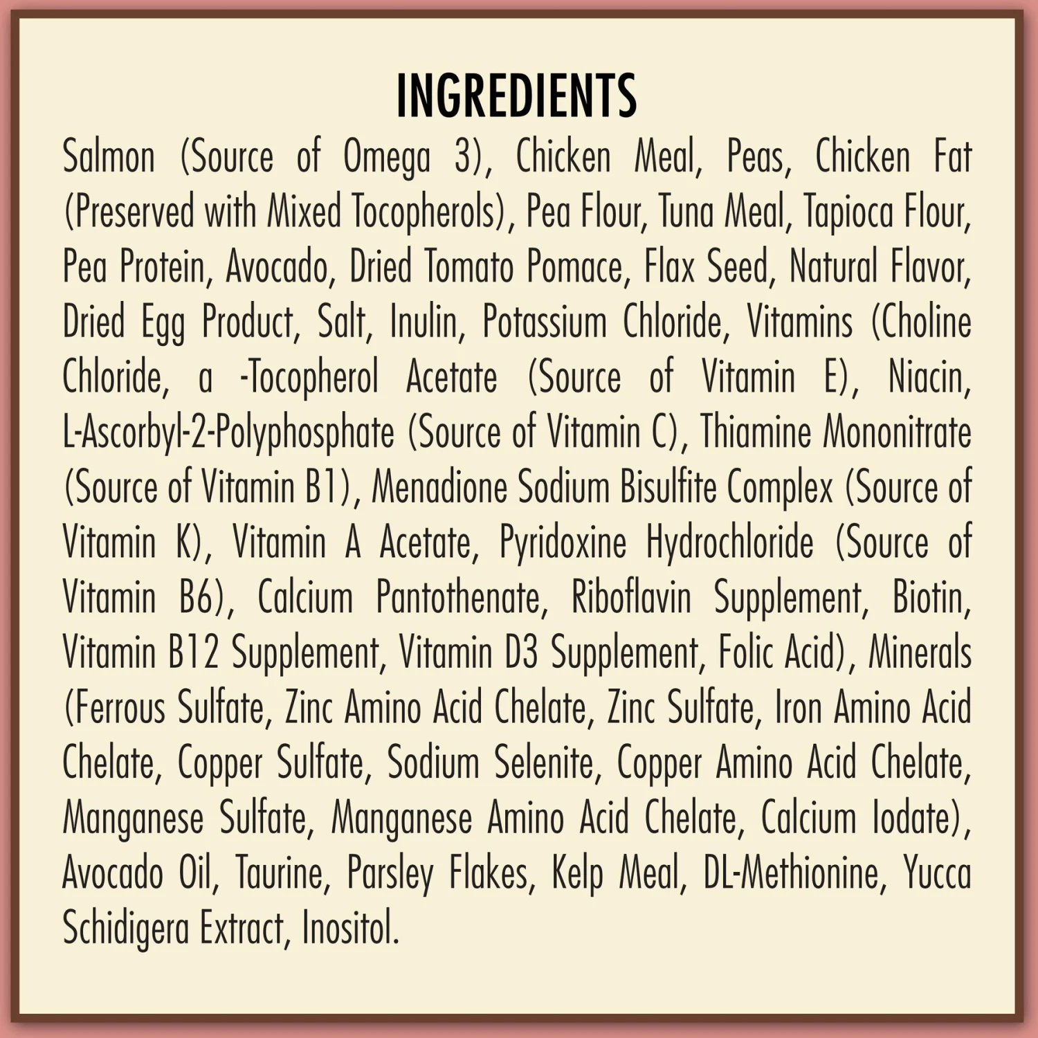 - Tuna and salmon are the top ingredients for the high-quality protein carnivores need, with no grains or fillers.