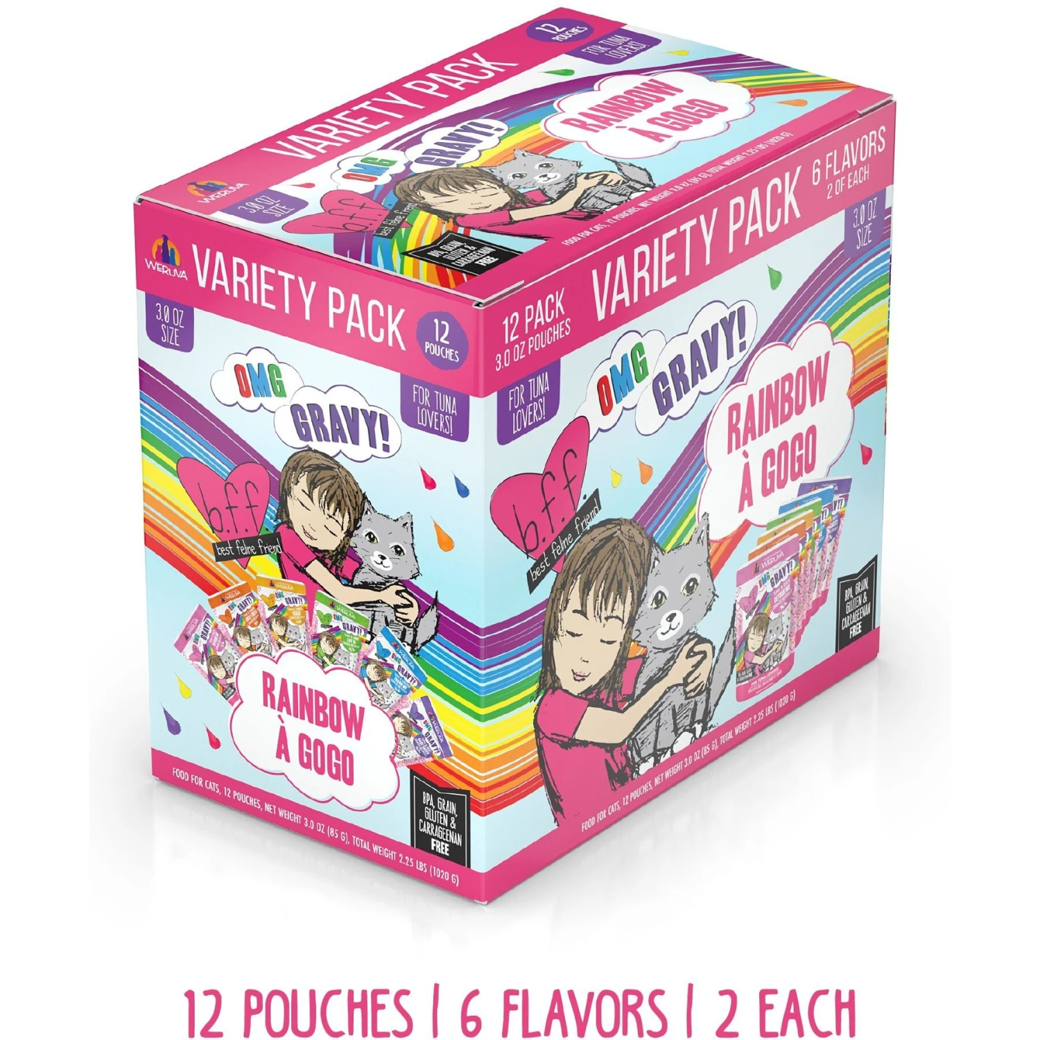 BFF Rainbow A Gogo Variety Pack Wet Cat Food Pouches, 3-oz, Case Of 12