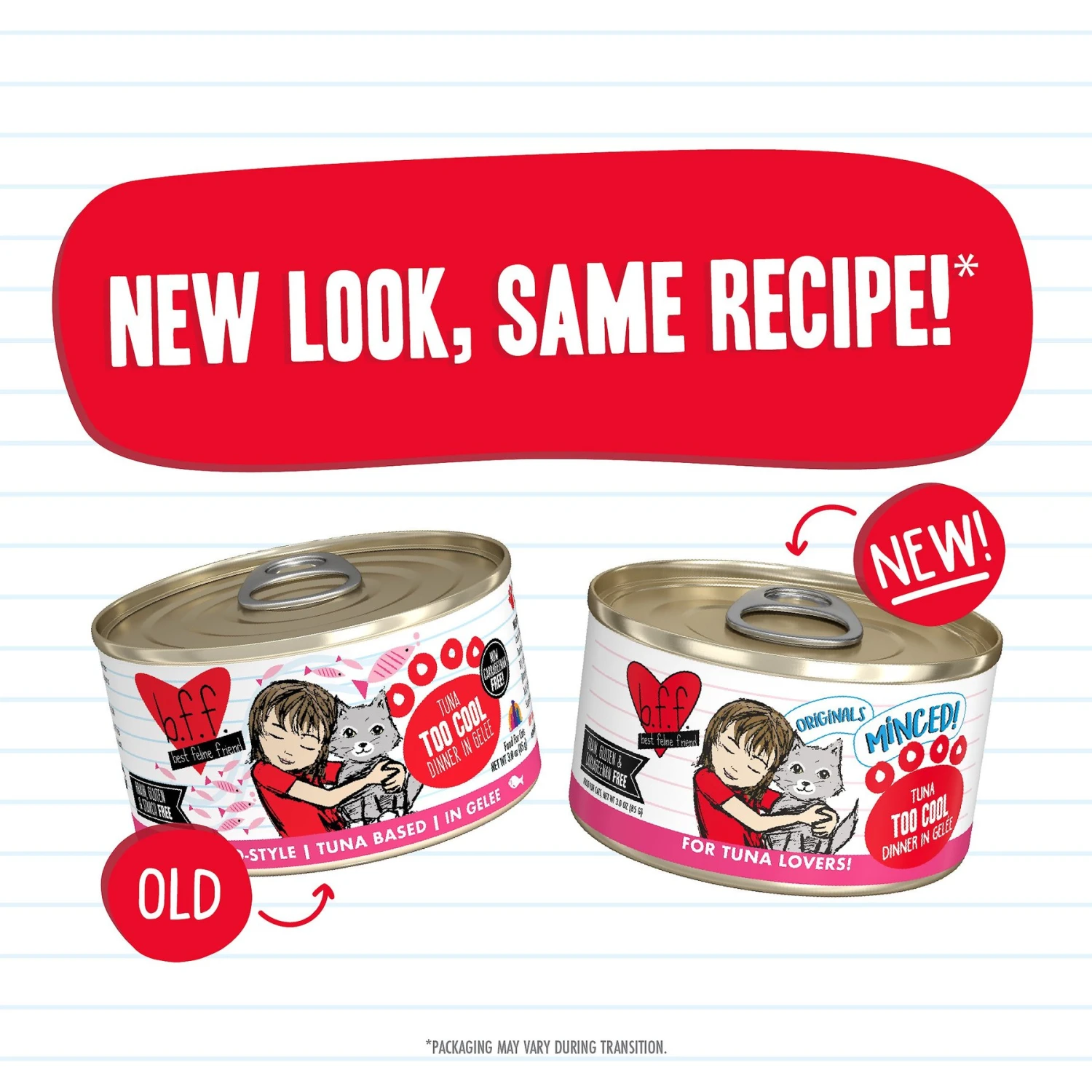 | Flavor | Tuna & Shrimp Sweethearts in Gravy, Tuna & Chicken 4-Eva in Gravy, Tuna Too Cool in Gelee, Variety Pack, Tuna & Tilapia Twosome in Gelee, Tuna & Pumpkin Valentine in Gravy, Variety Pack: Big Feline Feast, Tuna & Chicken Chuckles in Gelee, Tuna & Salmon Soulmates in Gelee, Tuna & Bonito Be Mine in Gelee |