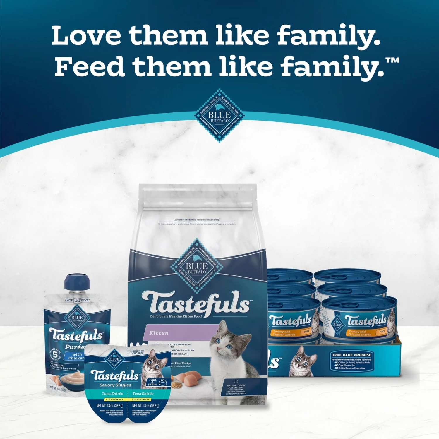 - BLUE for Cats is now BLUE Tastefuls, with a new look and the same tasty recipe.