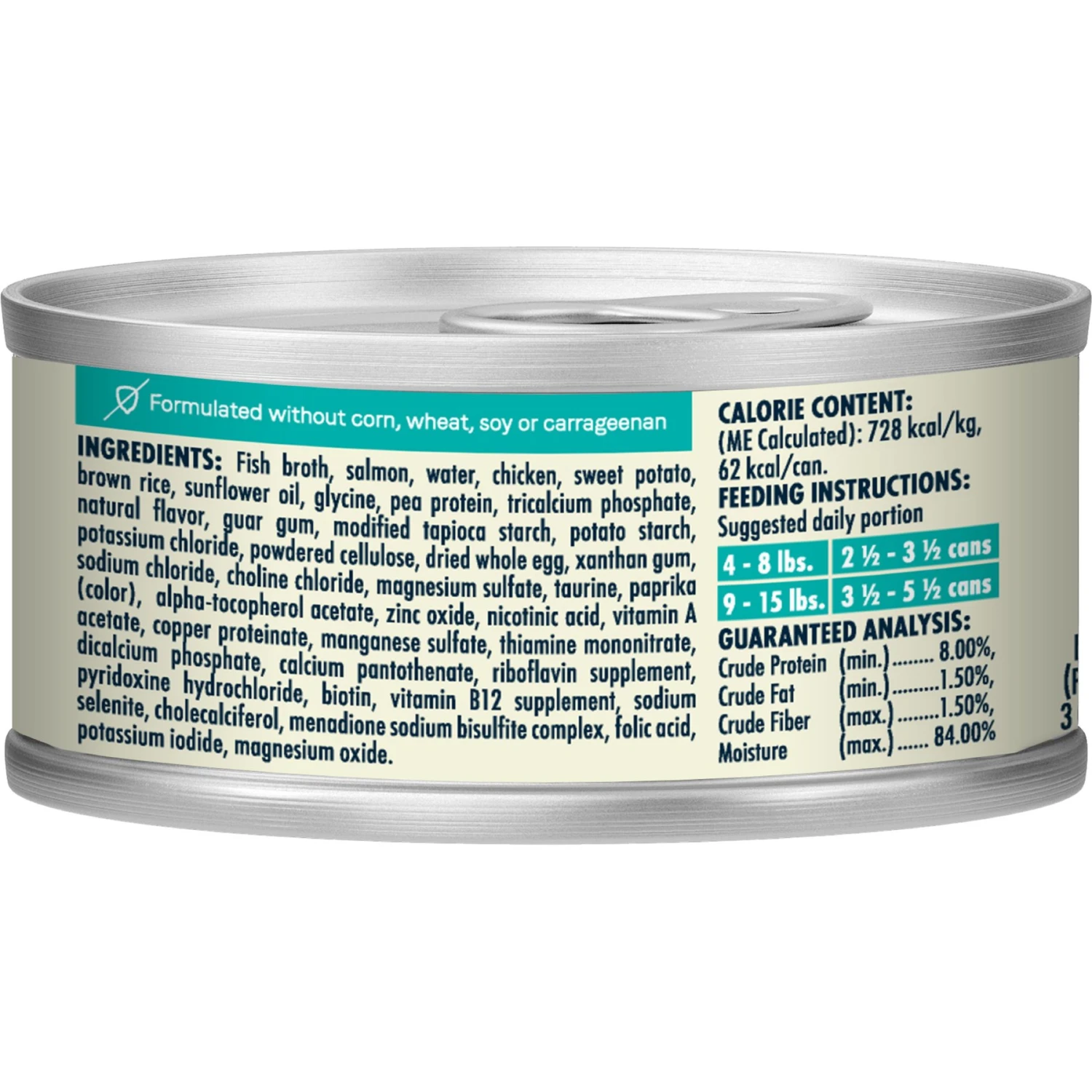 CANIDAE Balanced Bowl Salmon & Sweet Potato Recipe in Gravy Wet Cat Food, 3-oz can, case of 24—Your kitty is bound to find meals whisker-licking good with CANIDAE Balanced Bowl Salmon & Sweet Potato Recipe Wet Cat Food. Crafted with high-quality chicken and vegetables with a healthy dose of gravy, this complete, balanced wet food is purr-fect as a meal or food topper. Plus, it’s free of pesky wheat, corn, soy, and carrageenan! You can’t go wrong with salmon, sweet potato, chicken, and brown rice as staples in your favorite feline’s diet.