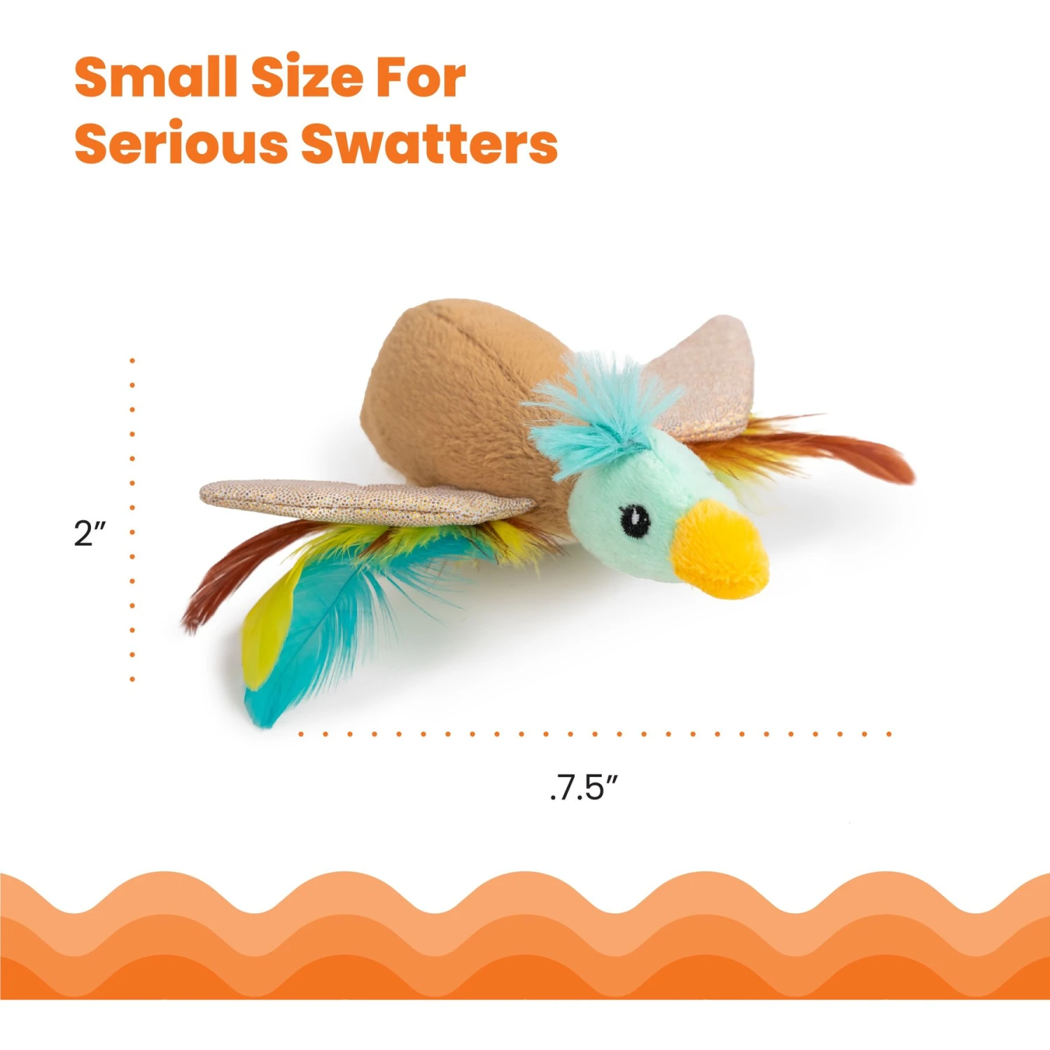 - This feathery and fun duck-themed cat toy includes feathers, crinkles, and bells for days of swat-worthy fun!