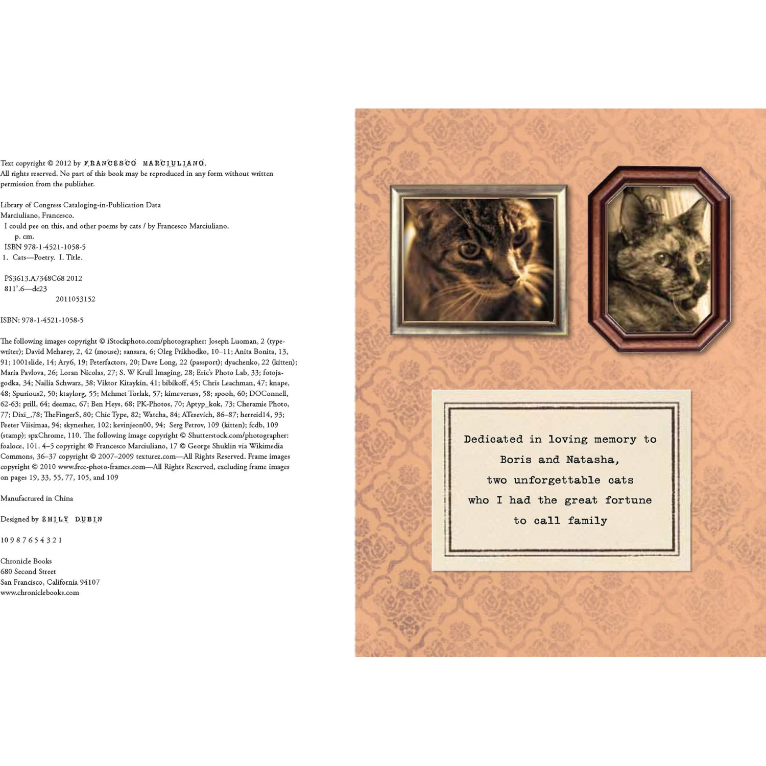 The poems collected in this book, such as “Who Is That on Your Lap?,” “This Is My Chair,” “Kneel Before Me,” “Nudge,” and “Some Of My Best Friends Are Dogs,” perfectly capture the inner workings of the cat psyche. In this volume, Marciuliano reveals kitties in their wackiest and most exasperating, but always lovable, moments.