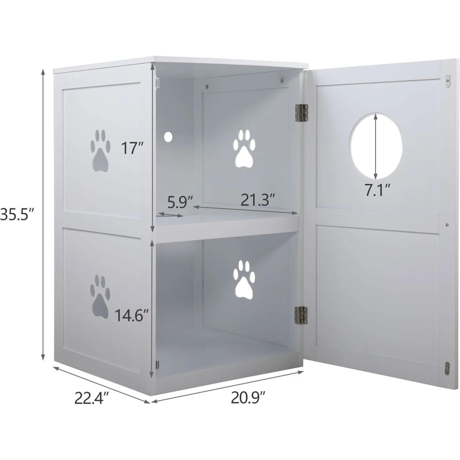 - Multifunctional litter box enclosure doubles as an end table or nightstand.