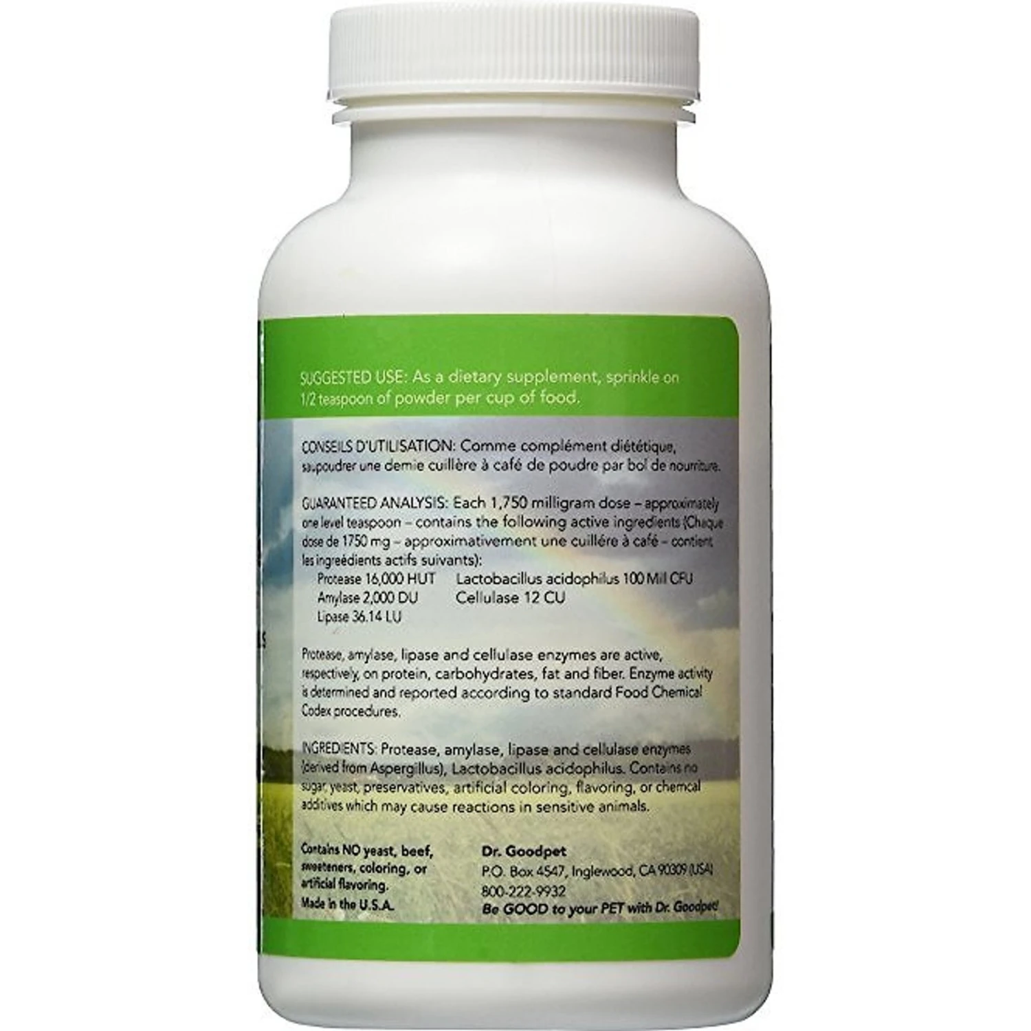 - Contains enzymes derived exclusively from a variety of plant sources to help digestion.