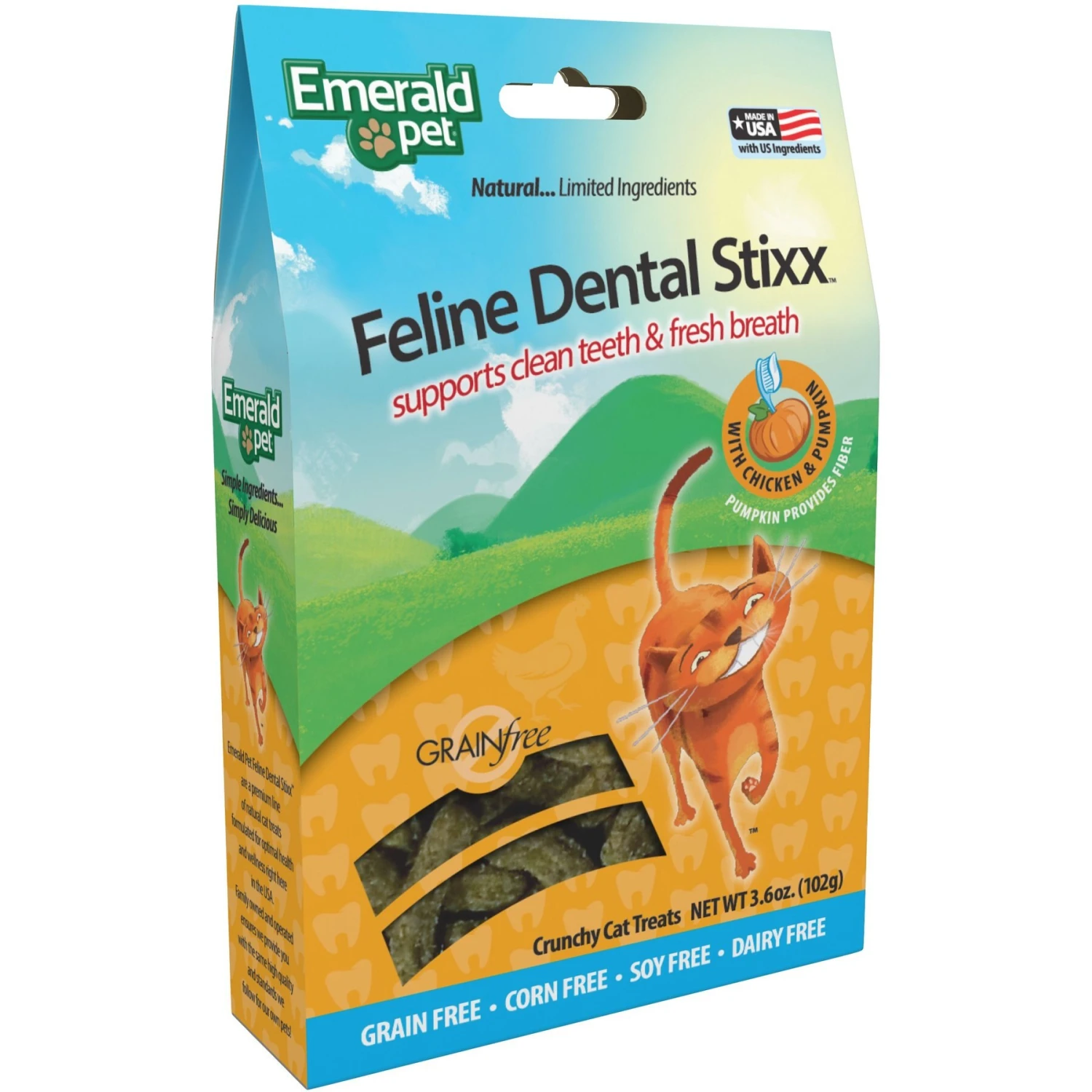 Emerald Pet Feline Dental Stixx With Chicken & Pumpkin Grain-Free Dental Cat Treats, 3.6-oz Bag