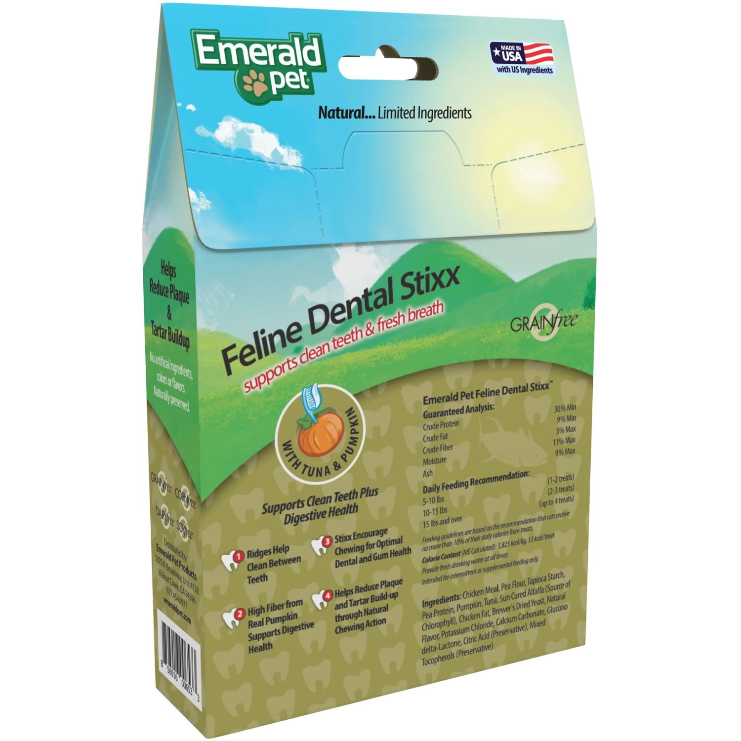 Emerald Pet Feline Dental Stixx With Tuna & Pumpkin Grain-Free Dental Cat Treats, 3.6-oz Bag