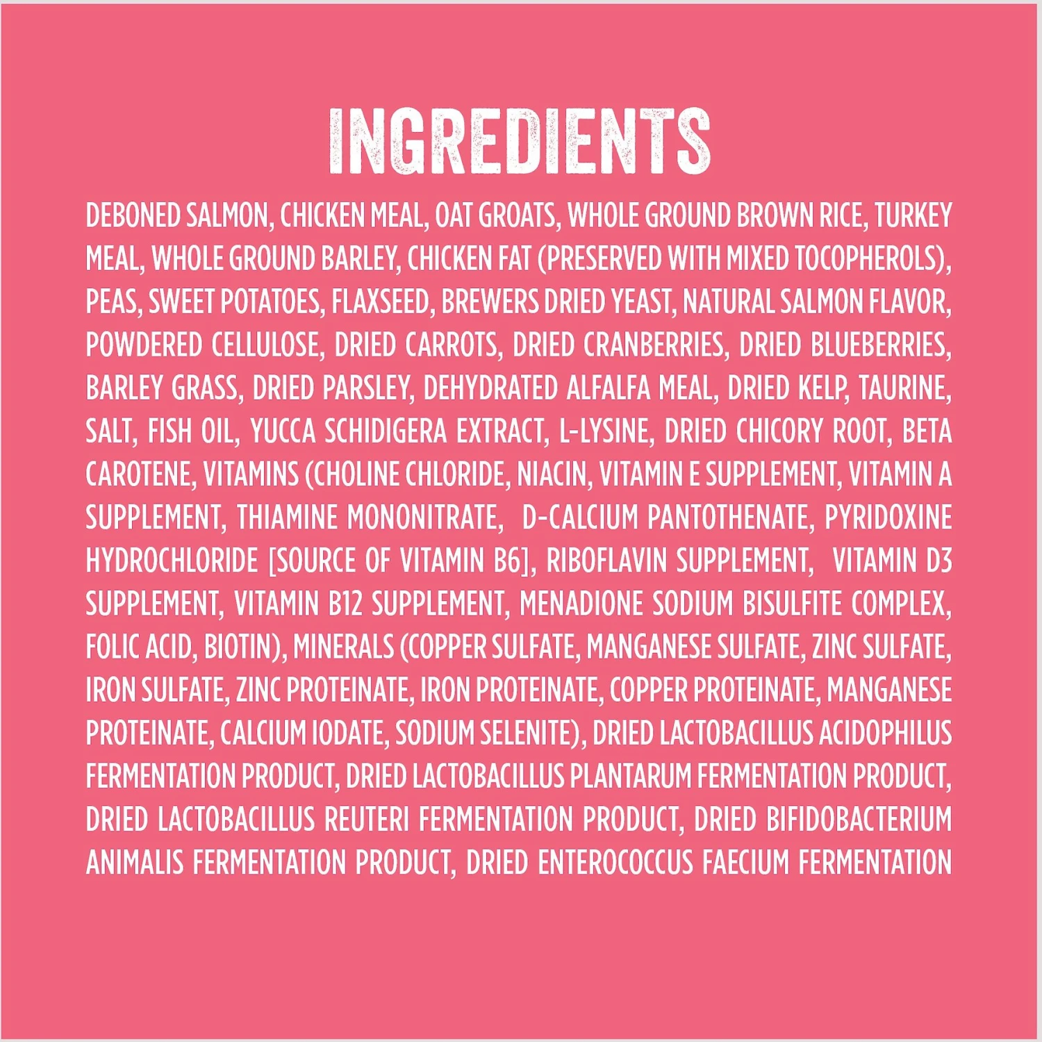 | Flavor | Salmon, Rice & Sweet Potato, Chicken & Brown Rice |