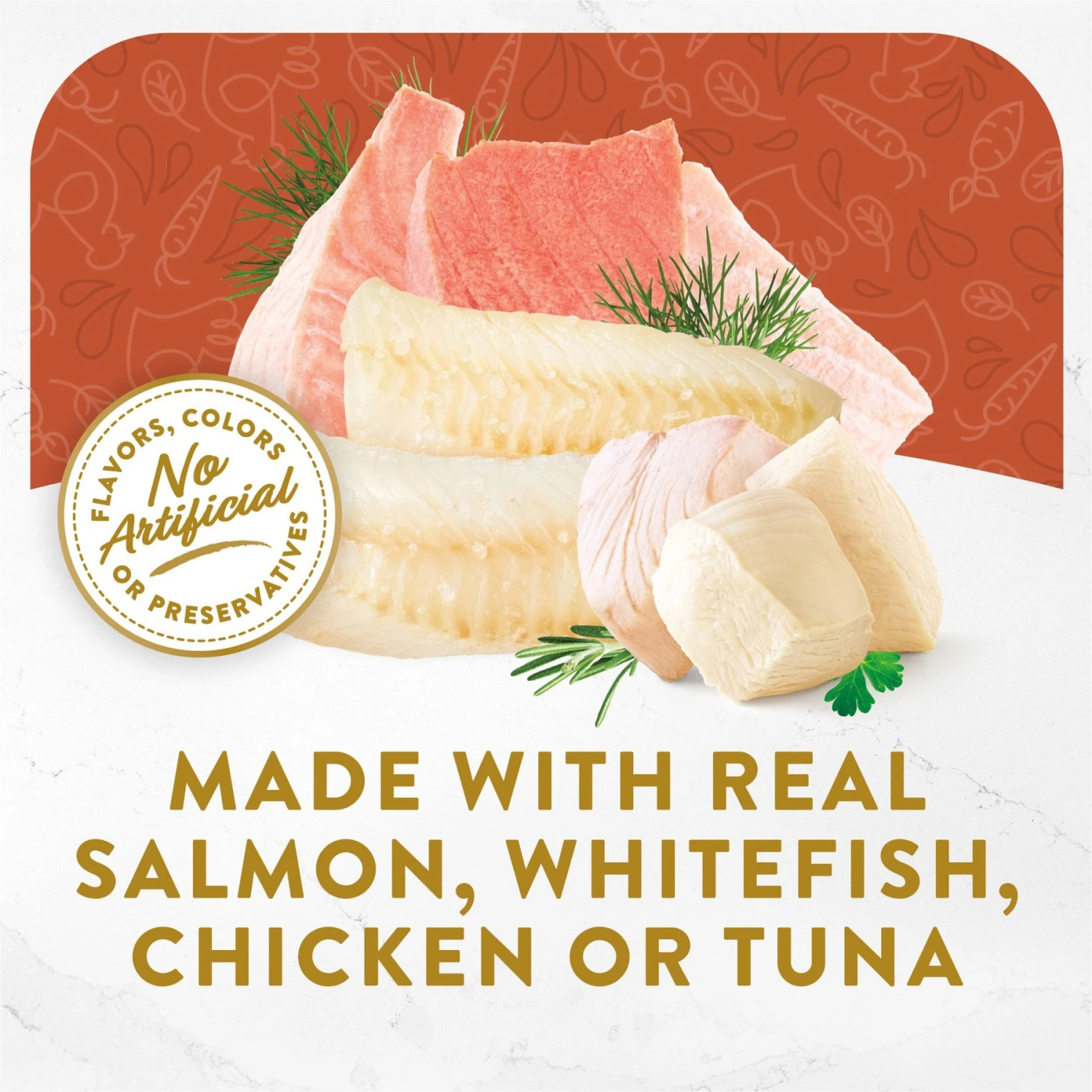 - These premium cat food toppers are made with real wild salmon and whitefish; chicken and vegetables; or tuna, chicken, and whitefish in a savory broth.