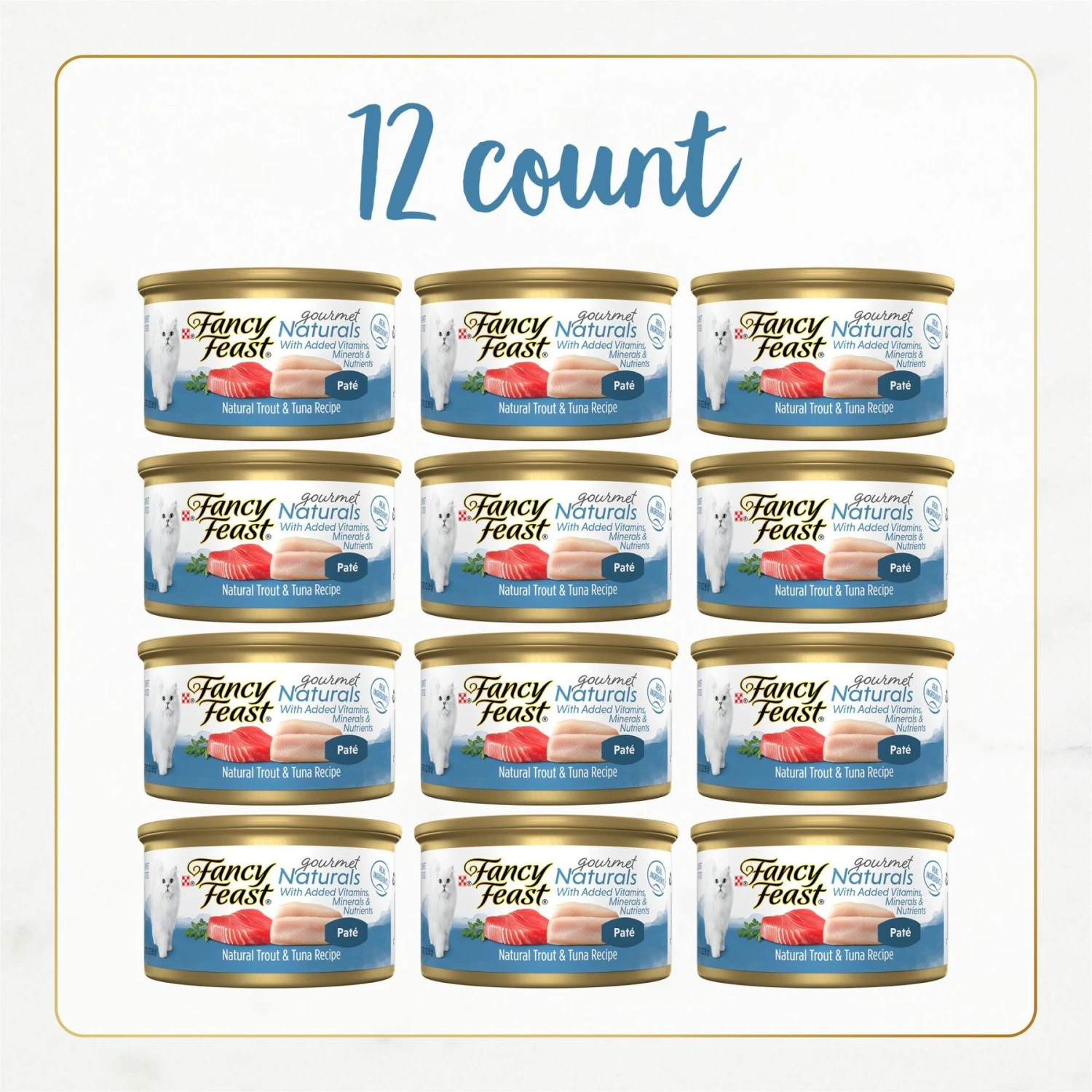 Fancy Feast Gourmet Naturals Trout & Tuna Recipe Pate Canned Cat Food, 3-oz, Case Of 12