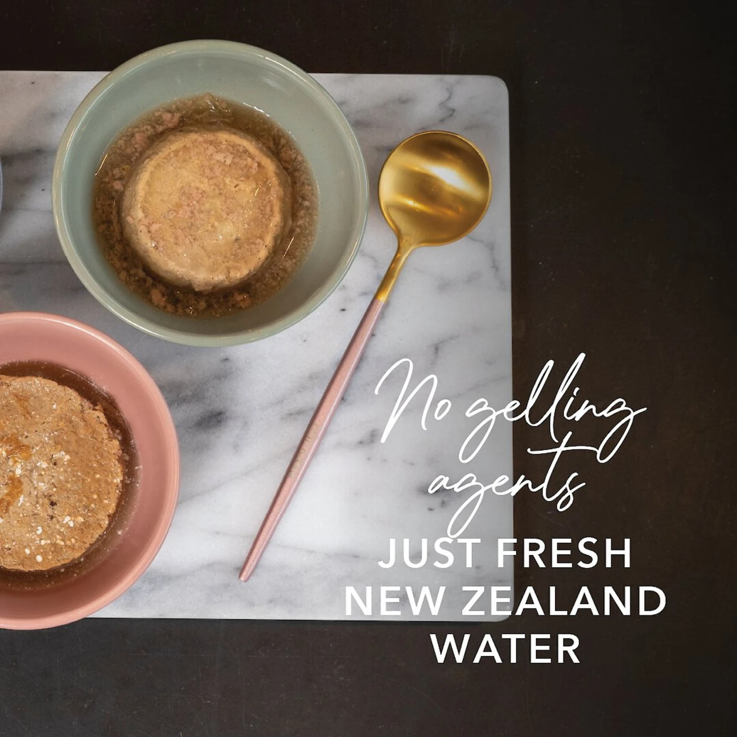 - Canned, grain-free, lamb and salmon flavored cat food that’s made in New Zealand.