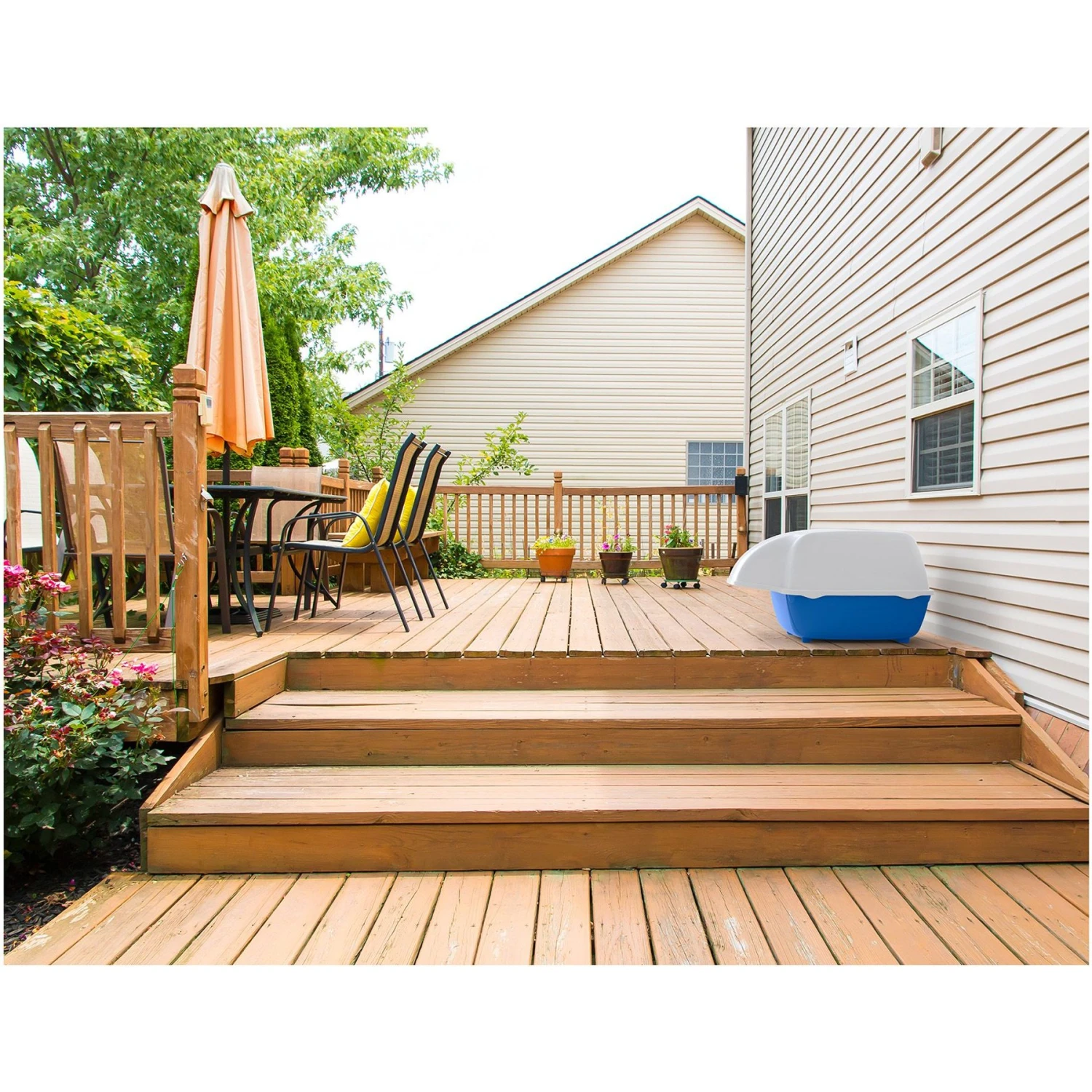 - Paw-fect for use on the balcony or in the garden—the high-sided base keeps litter from spilling out.