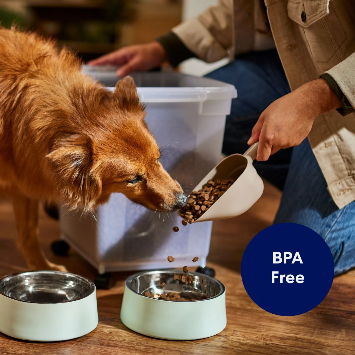 - This food scoop boasts several convenient features to help make prepping for your pet’s mealtime a breeze.
