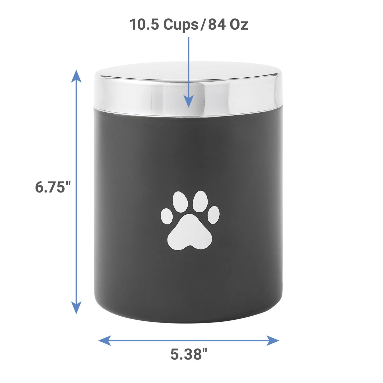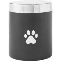 - Stainless-steel storage canister keeps your pet’s food and treats fresh and on hand.