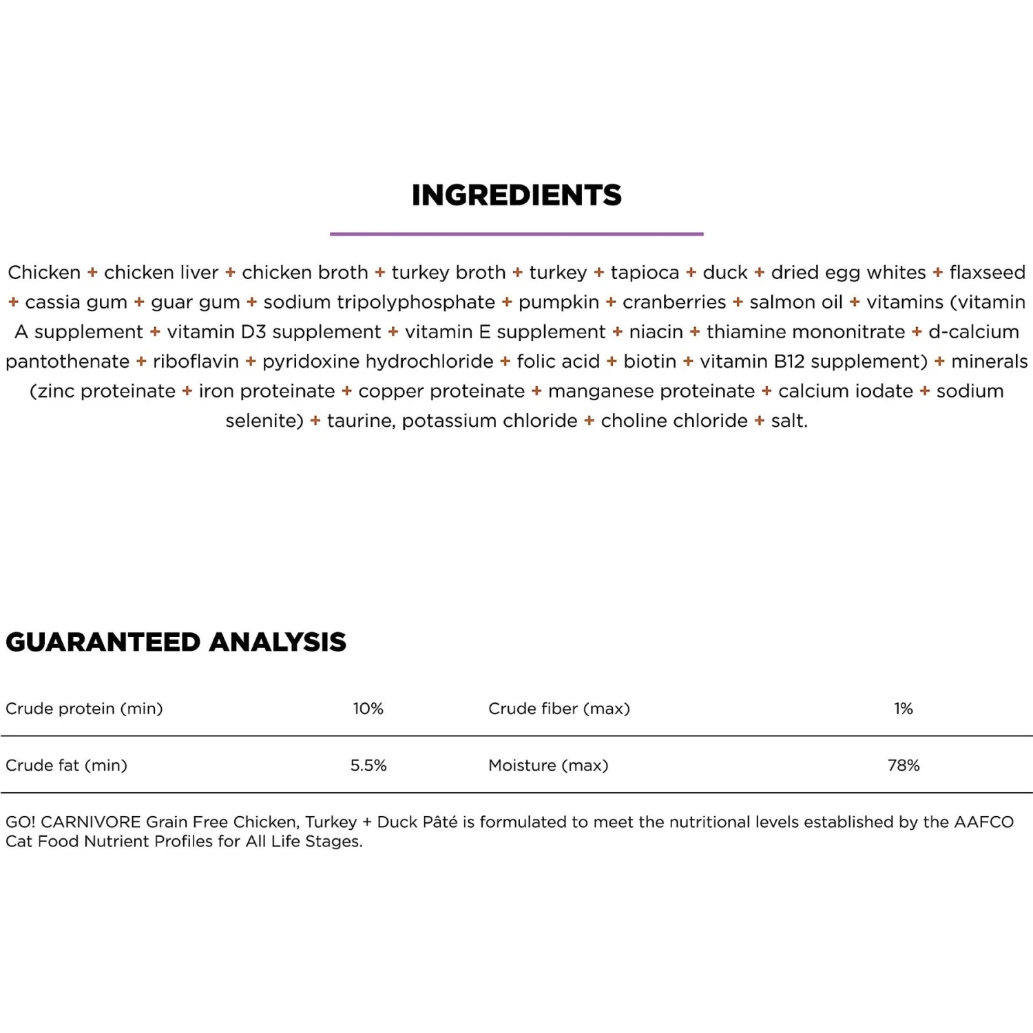 Go! Solutions Carnivore Grain-Free Chicken, Turkey + Duck Pate Cat Food