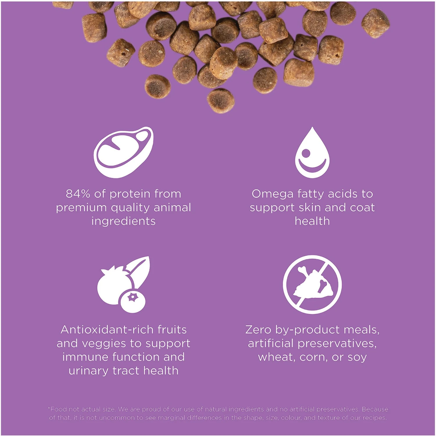 - Contains maximum meat protein to support feline friends at every age, features antioxidant-rich cranberries to support urinary tract health and taurine for vision and heart health.