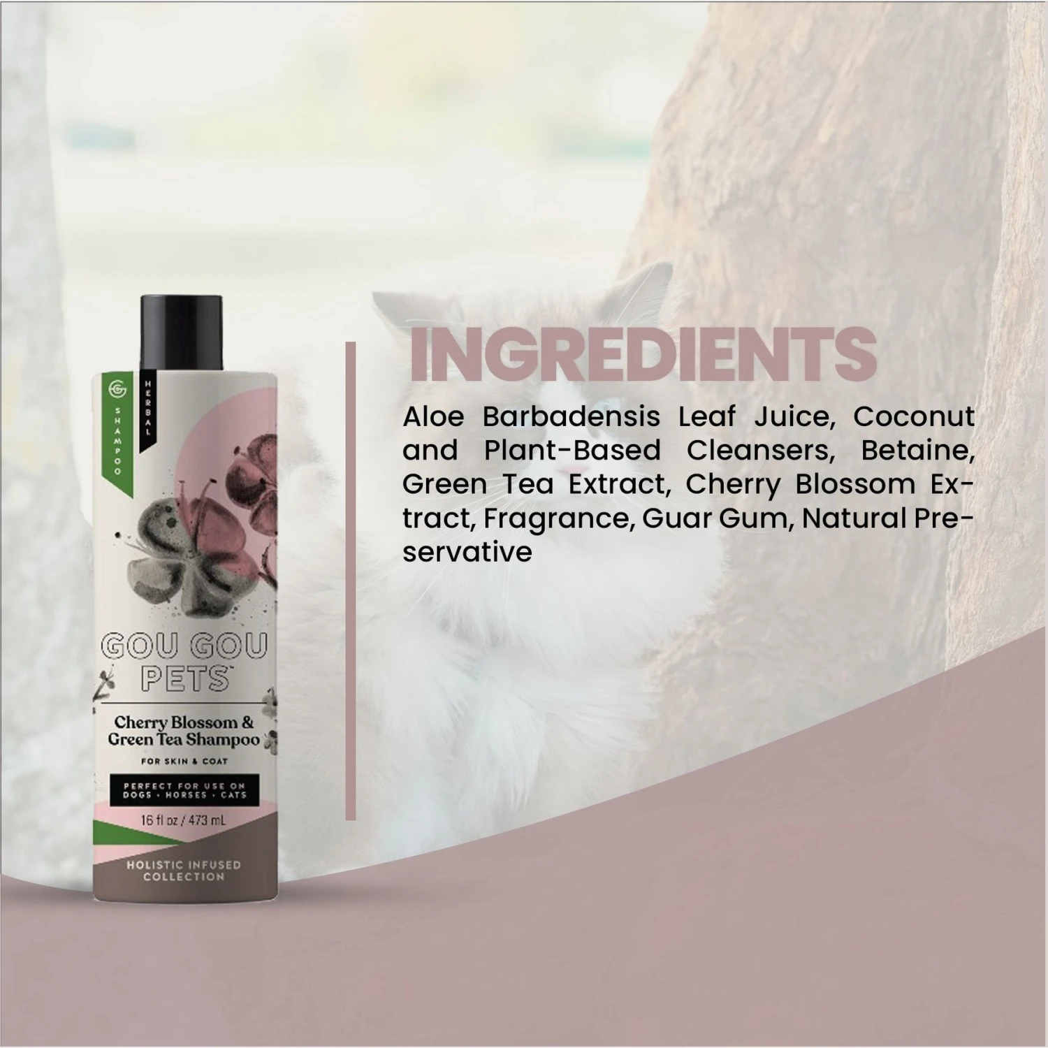 Gou Gou Pets Holistic Natural Derived Cherry Blossom & Green Tea Dog & Cat Shampoo, 16-oz Bottle
