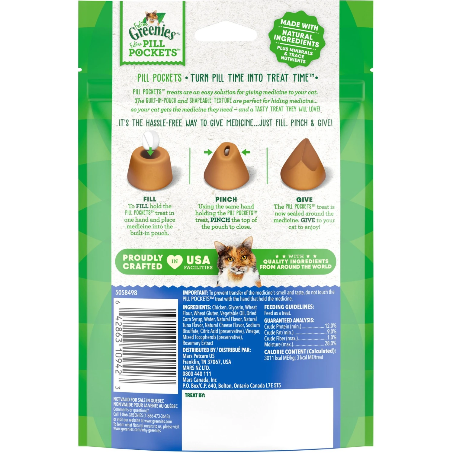 Greenies Pill Pockets Feline Tuna & Cheese Flavor Natural Soft Adult Cat Treats, 45 Count