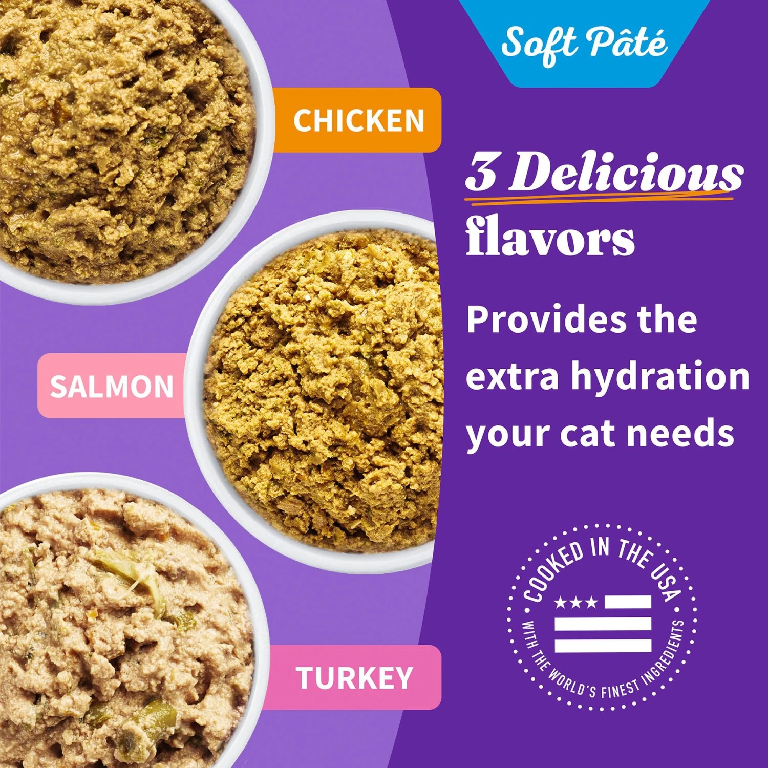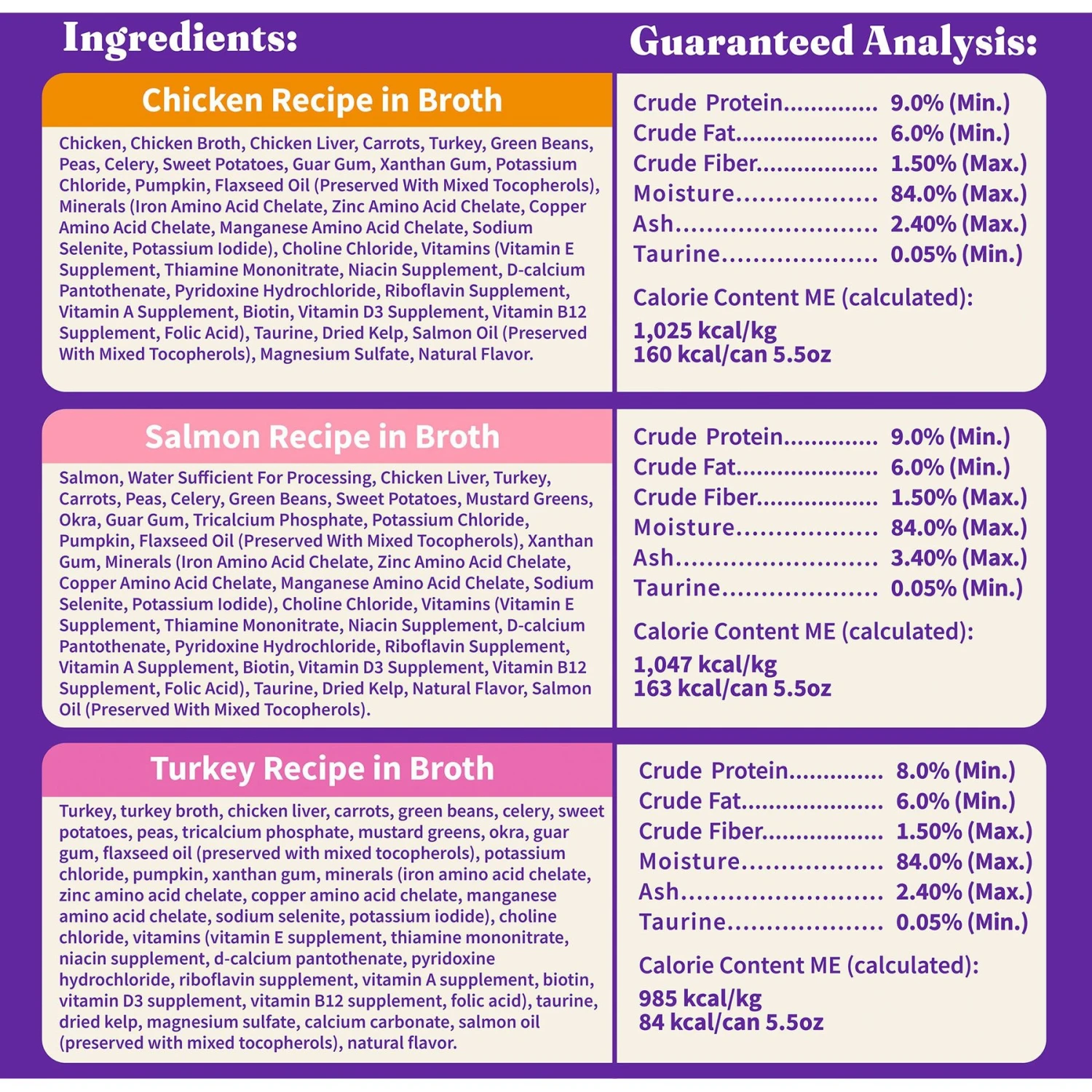 Halo Chicken, Salmon, Turkey Variety Pack Grain-Free Canned Cat Food, 5.5-oz, case of 12 — For an amazing assortment of satisfying flavors, the Halo Cats Variety Pack is your best bet! It includes three super savory stew recipes, featuring chicken, salmon, and turkey. The wet food is made with sustainably sourced ingredients like non-GMO produce and nothing from factory farms. It’s also full of key nutrients to support your BFF’s heart, eye, and muscle health. Best of all, the stews contain no artificial ingredients or meat meals, making it easier for felines to metabolize the nutrients in their food. With its’ delectable flavor and pet parent-approved benefits, this Halo variety pack is a must-have for any cat-loving family!