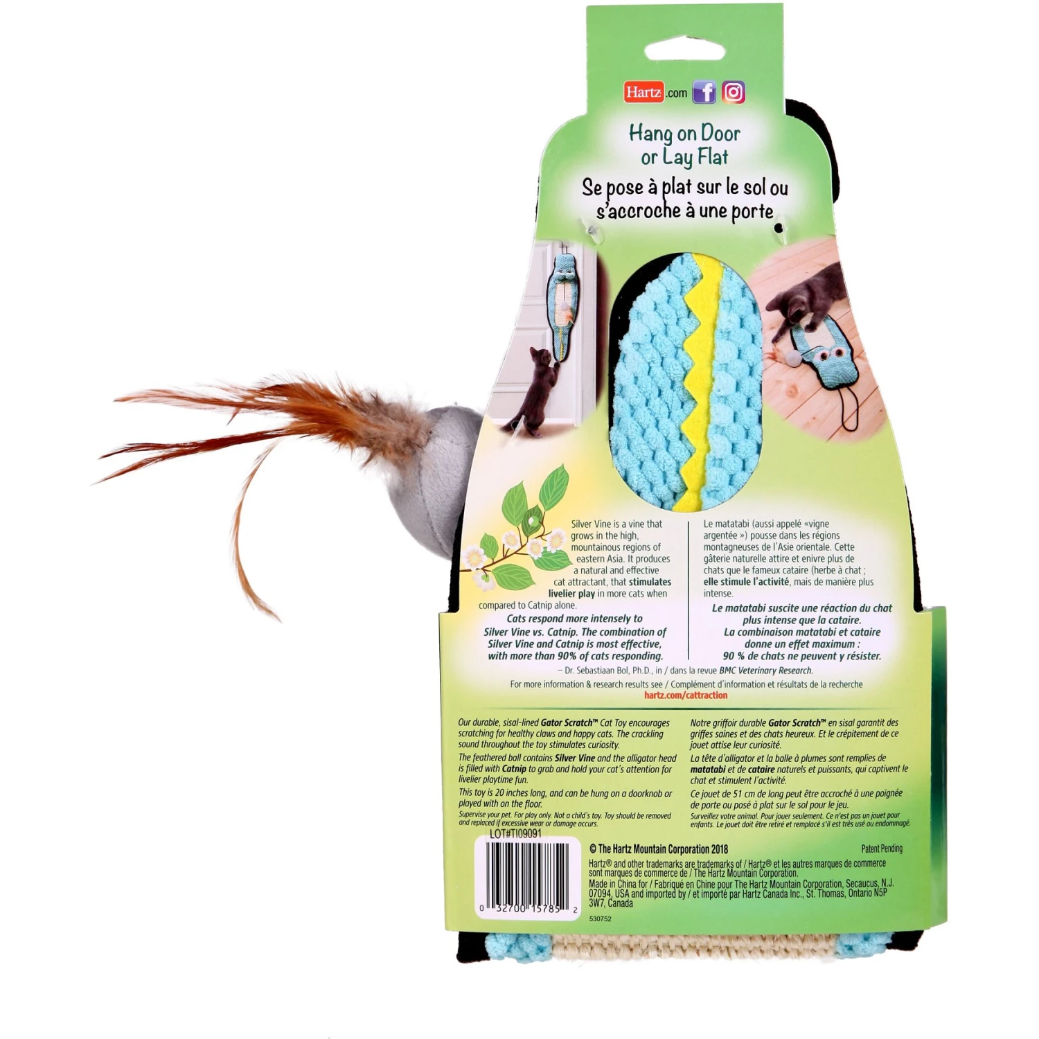 Hartz Cattraction Silver Vine & Catnip Gator Cat Scratcher Toy, Color Varies