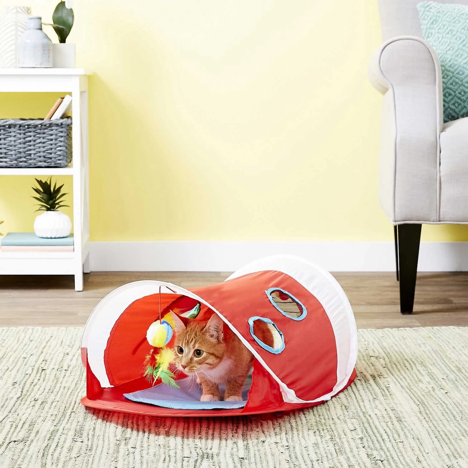 - Multi-purpose pop-up tent is great for your kitty to play, nap, scratch and lounge in.