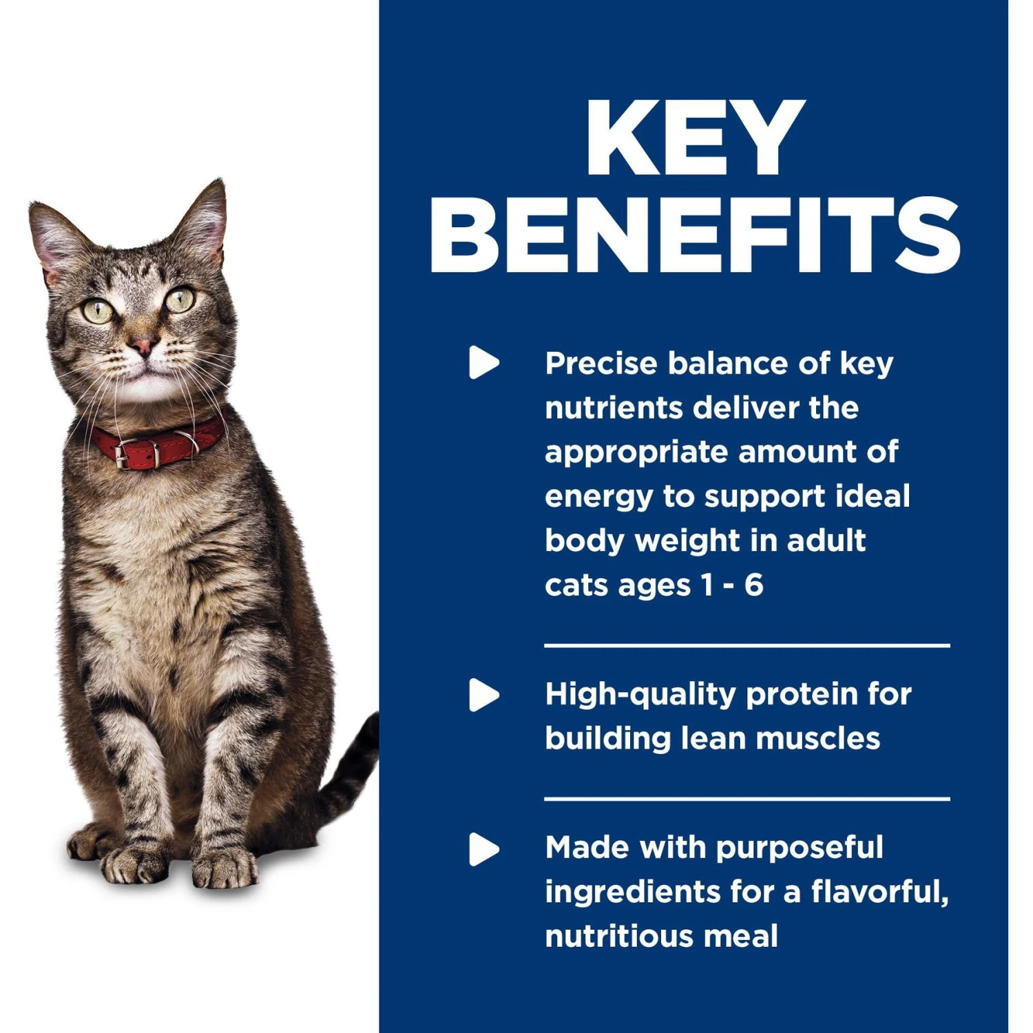 - A complete and balanced diet recommended for adult cats 1-6 years of age.