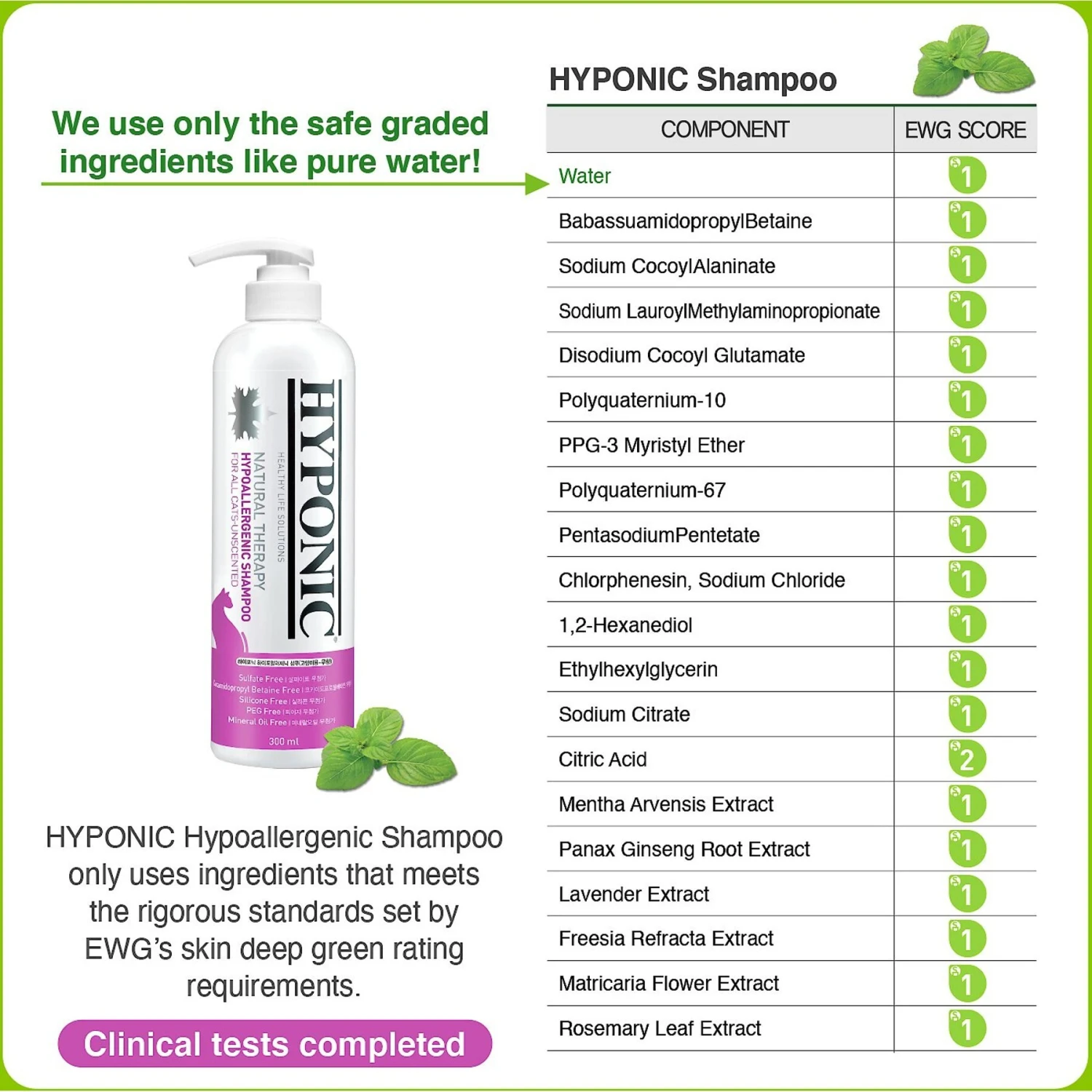 - Each ingredient in this formula is graded by EWG as safe for use on pets’ skin. EWG is an American non-profit environment organization that rates products based on how safe their cosmetic ingredients are.