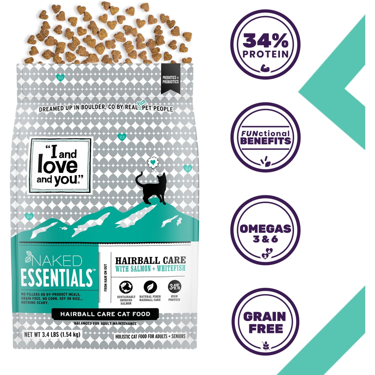 I And Love And You Naked Essentials Hairball Support Salmon + Whitefish Dry Cat Food, 3.4-lb Bag