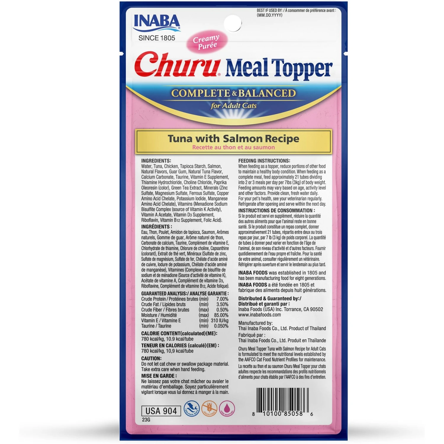 Inaba Churu Salmon Recipe Grain-Free Cat Food Topper, 0.5-oz Tube, 4 Count
