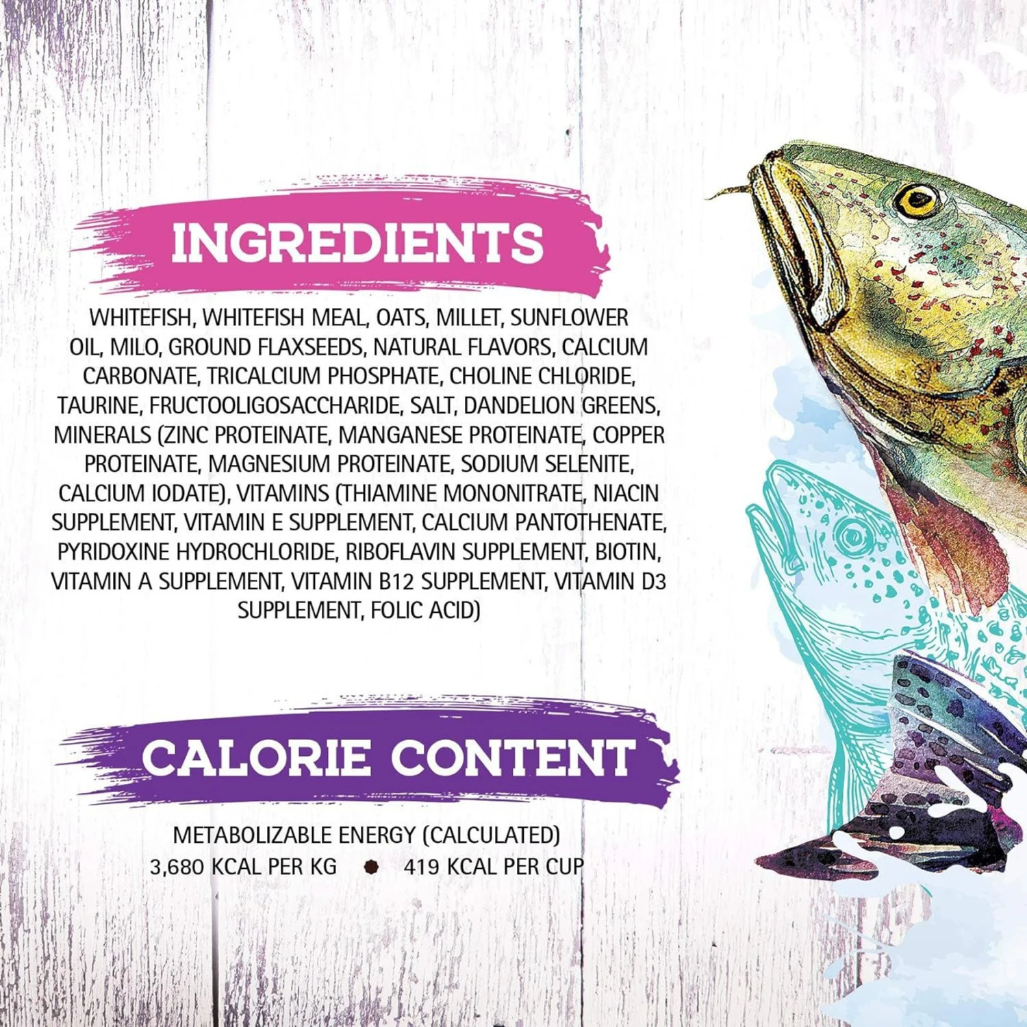 - The first 2 ingredients are animal protein—whitefish and whitefish meal—to satisfy your feline’s carnivorous instincts.