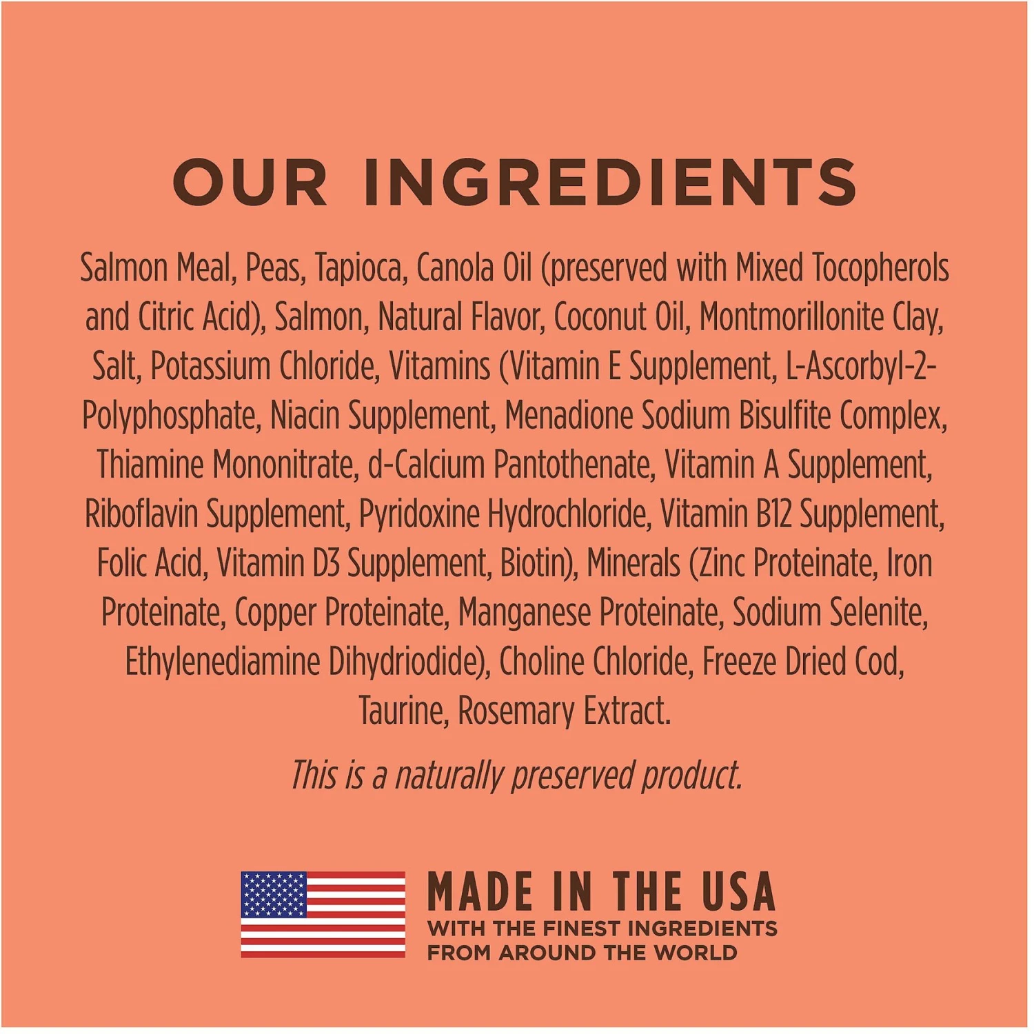 - Made with wild-caught salmon that’s easy to digest and rich in essential amino acids.