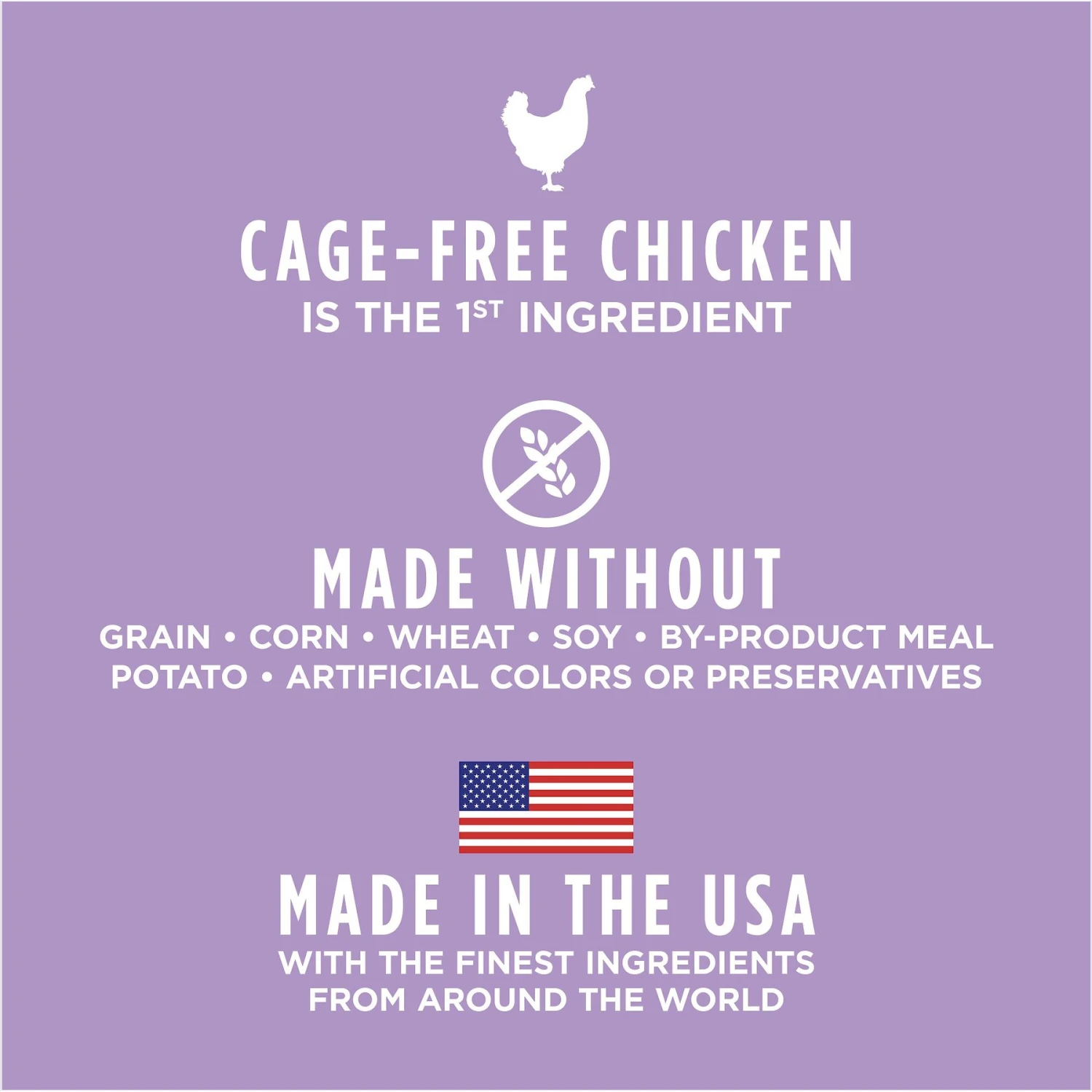 - Cage-free chicken is the first ingredient for high animal protein to support the energy needed for growth and play.