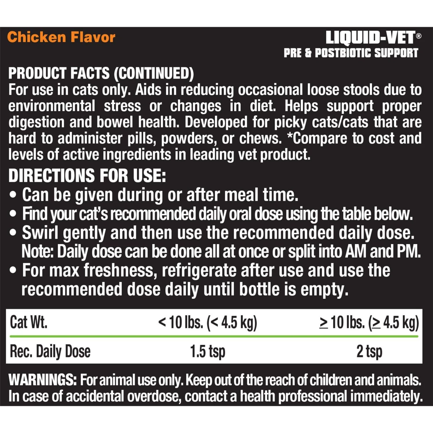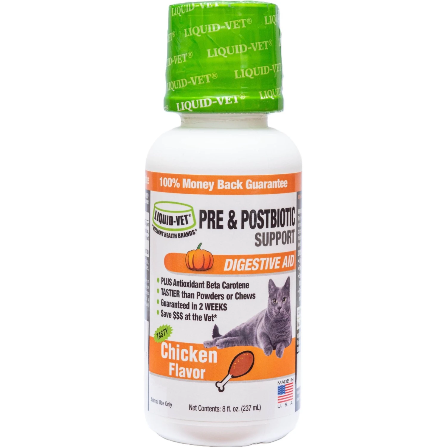 Liquid-Vet Feline Pre & PostBiotic Support Chicken Flavor Cat Digestive Aid, 8-oz Bottle