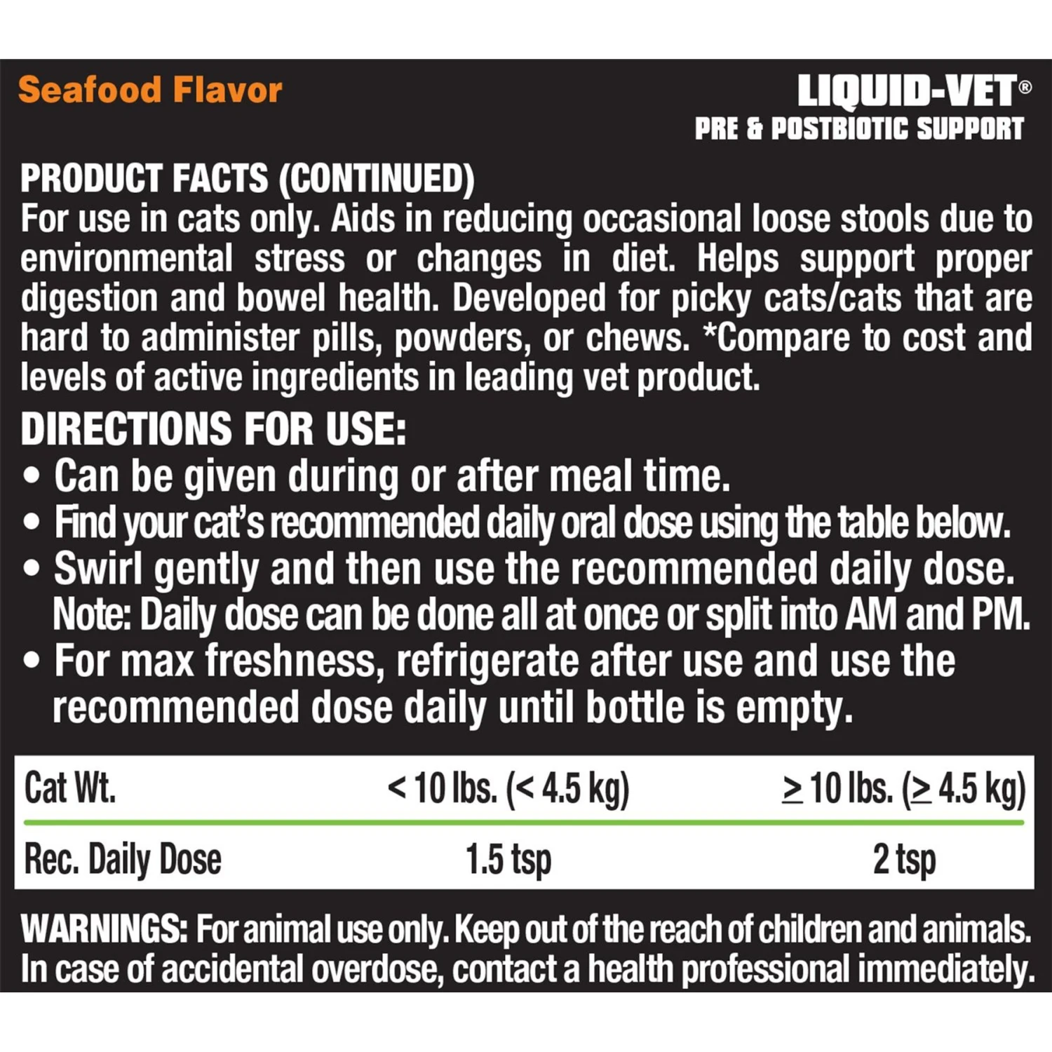 Liquid-Vet Feline Pre & PostBiotic Support Seafood Flavor Cat Digestive Aid, 8-oz Bottle