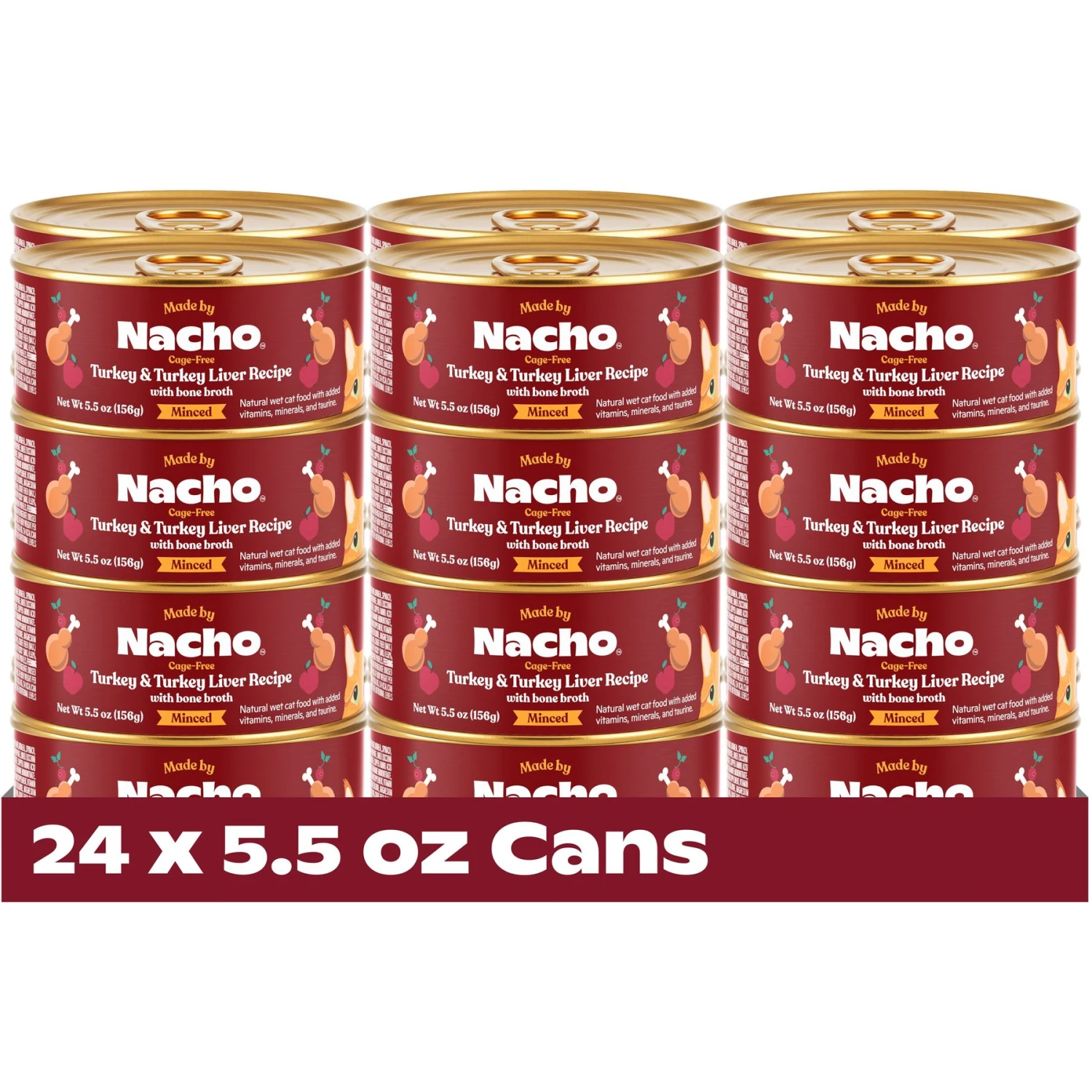Made By Nacho Cage-Free Turkey & Turkey Liver Recipe Minced Wet Cat Food, 5.5-oz Can, Case Of 24
