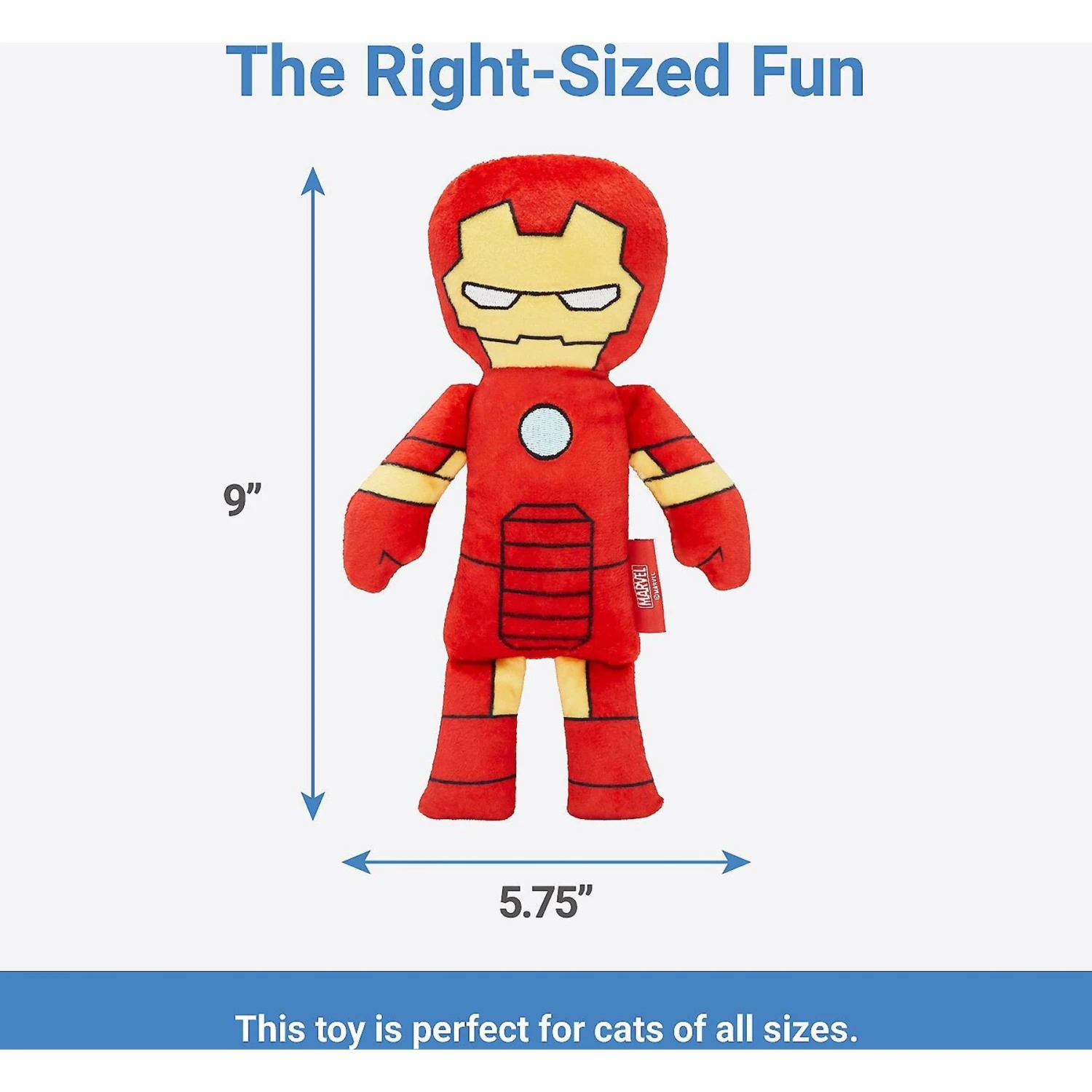 - Plush, kicker-style Iron Man toy designed for cats who love to play rough with their toys.