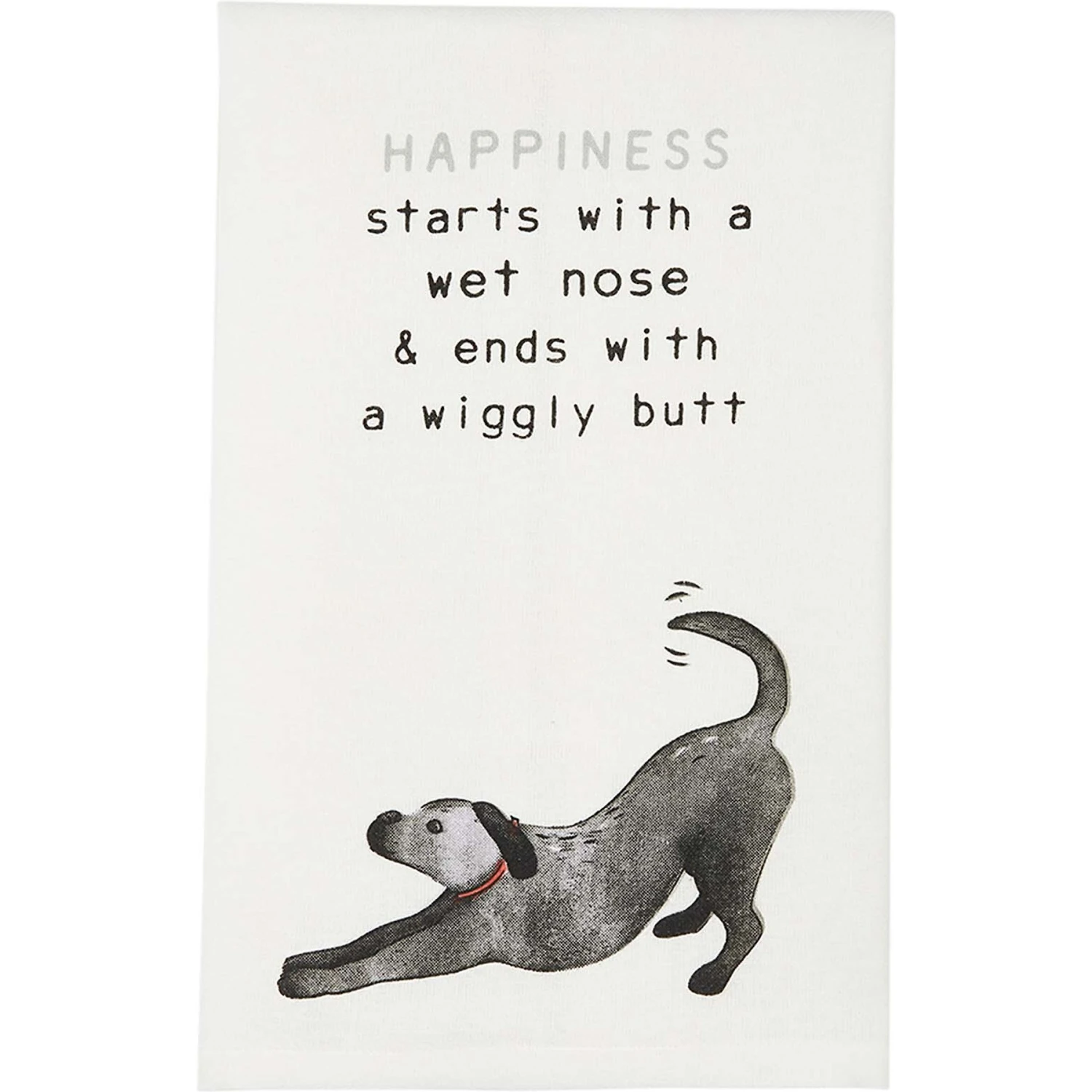 - Printed text reads “Happiness starts with a wet nose & ends with a wiggly butt.”