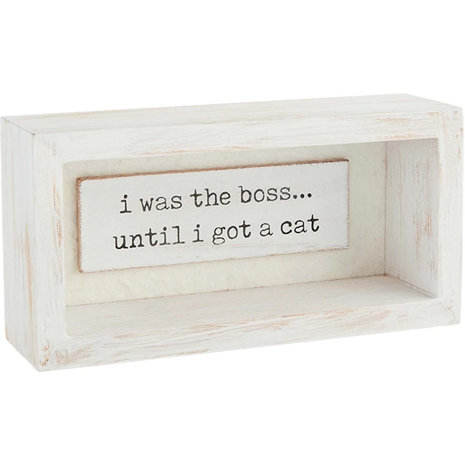 - Plaque reads, “I was the boss…until I got a cat.”