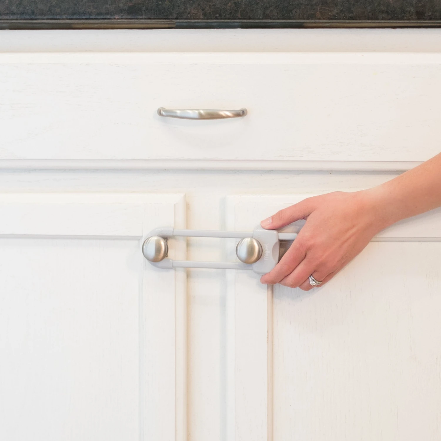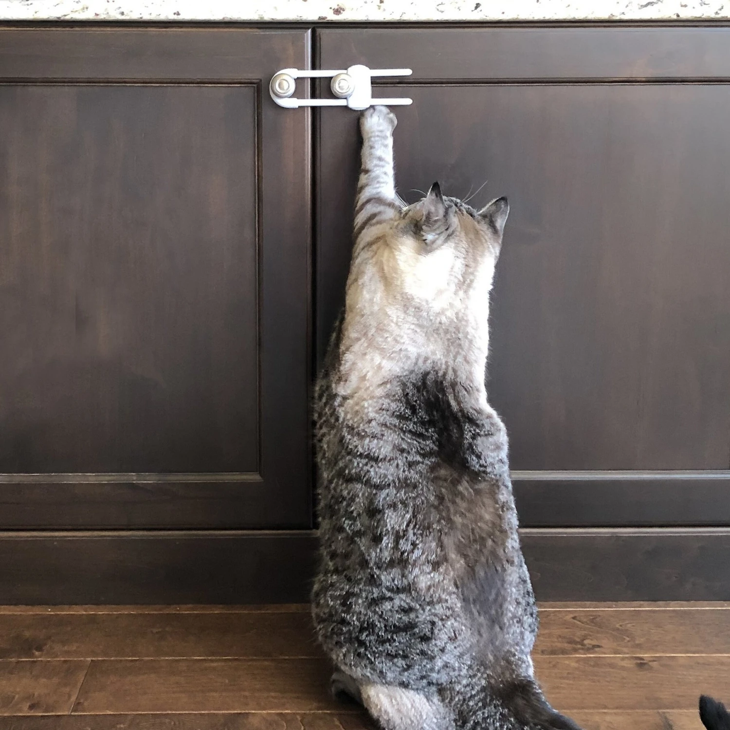 - Keeps furry pet paws out of cabinets.