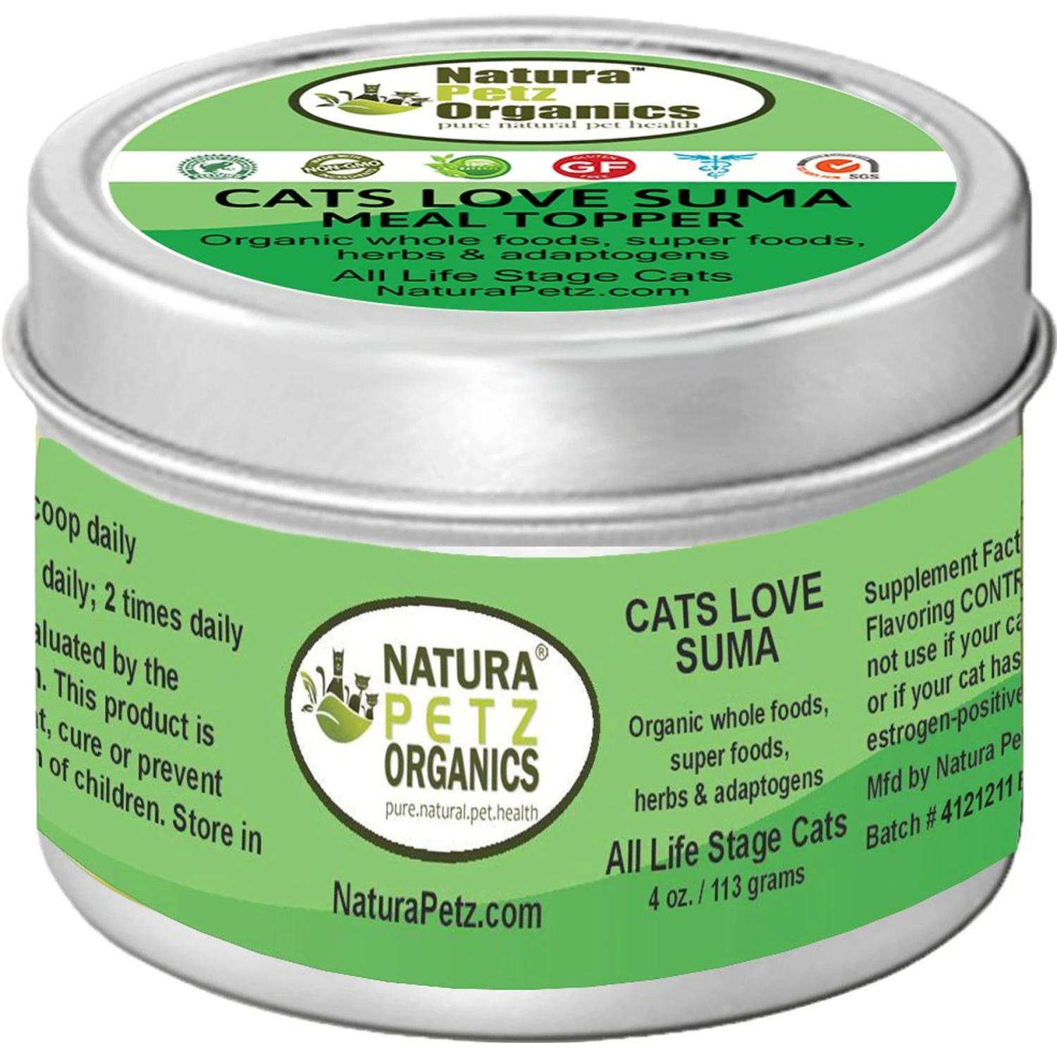 Natura Petz Organics Cats Love Suma Turkey Flavored Powder Immune Supplement For Cats, 4-oz Tin