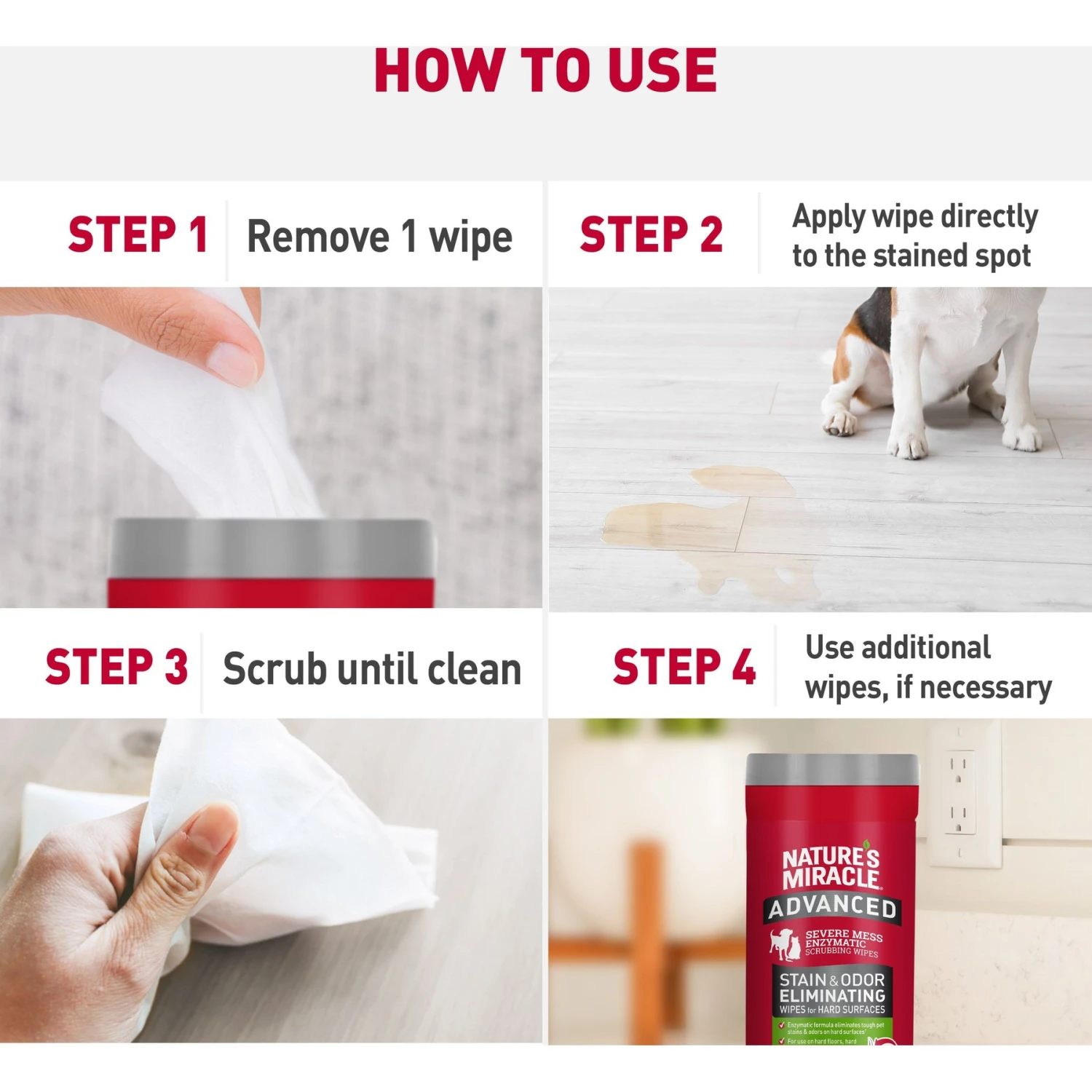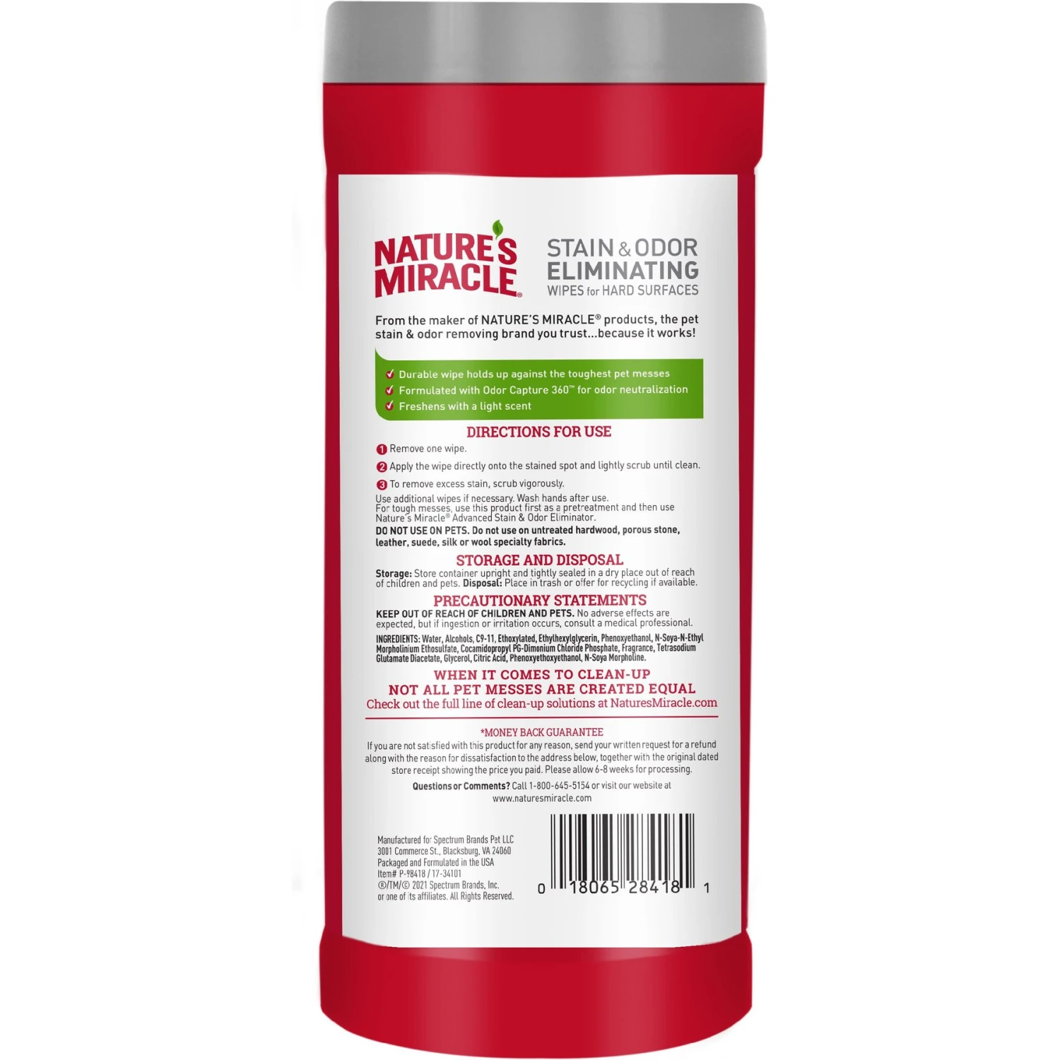 Nature’s Miracle Advanced Hard Surfaces Stain & Odor Eliminator Wipes, 30 Count