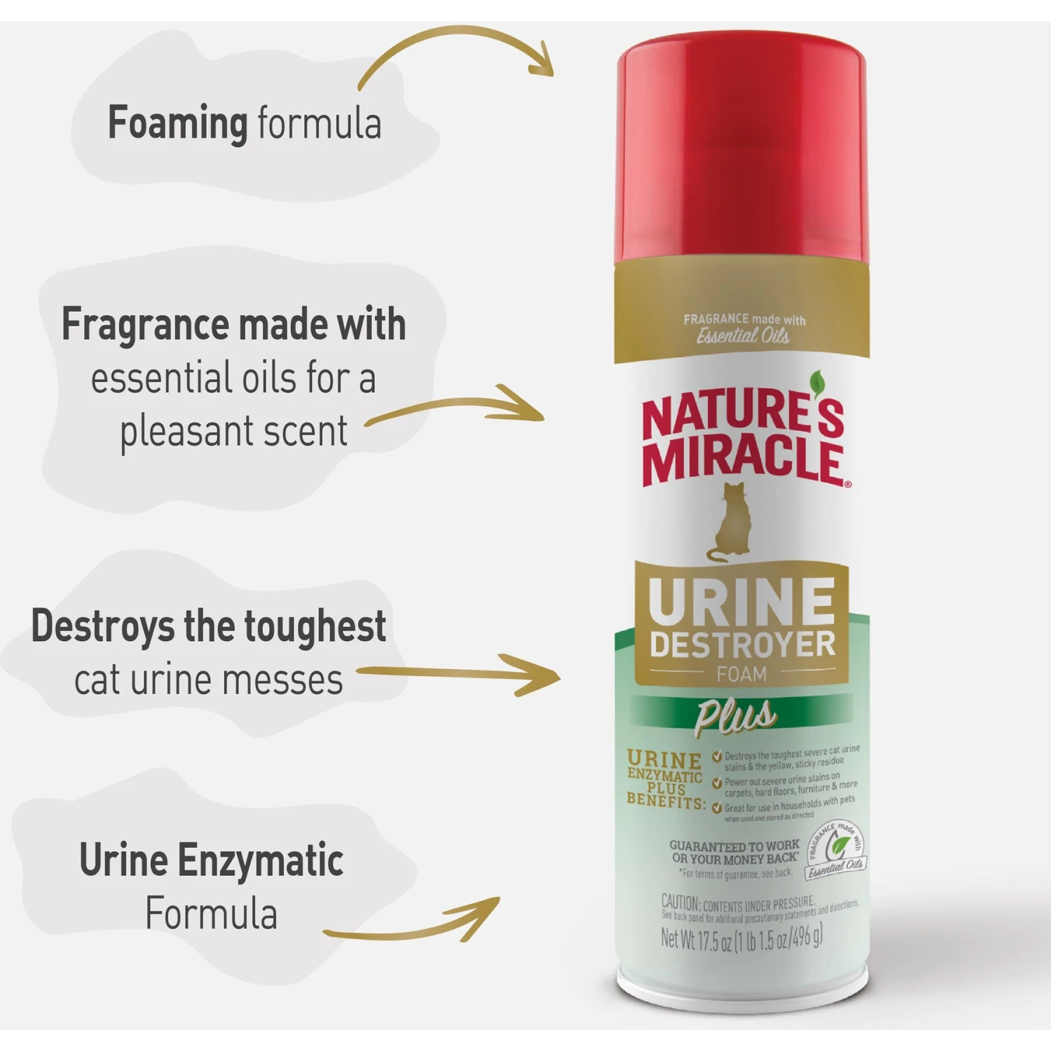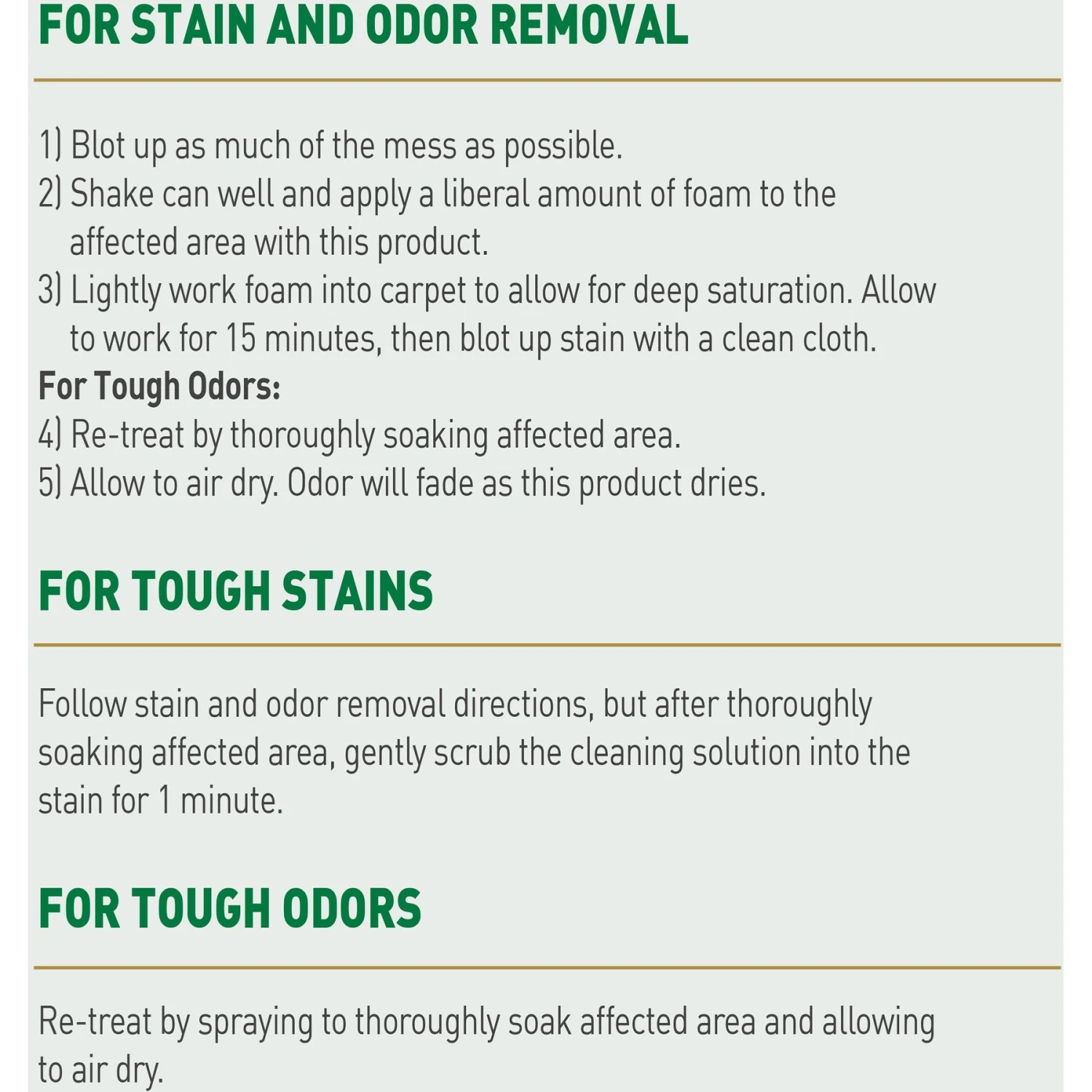 - Enzymatic foam breaks down to eliminate strong urine smells.