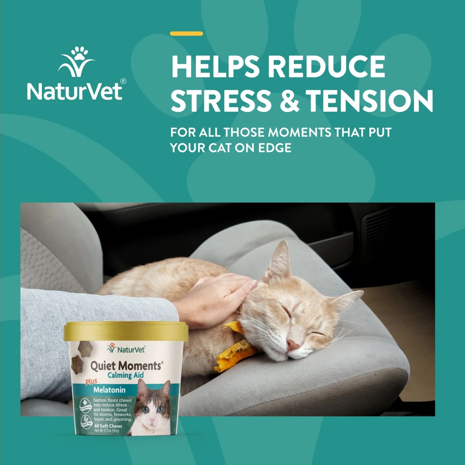 NaturVet Quiet Moments Soft Chews Calming Supplement For Cats & NaturVet Digestive Enzymes Plus Probiotic Soft Chews Digestive Supplement For Cats