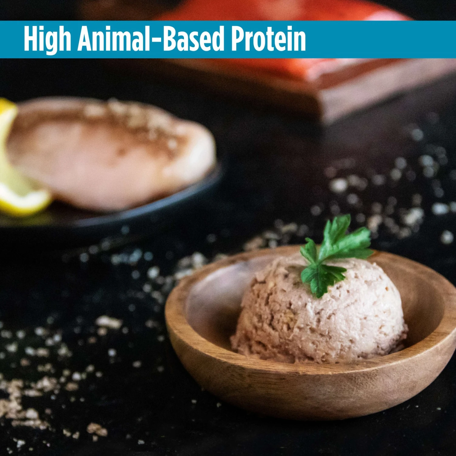- Complementary protein duo features salmon and mackerel for the animal protein and flavor your little carnivore craves.